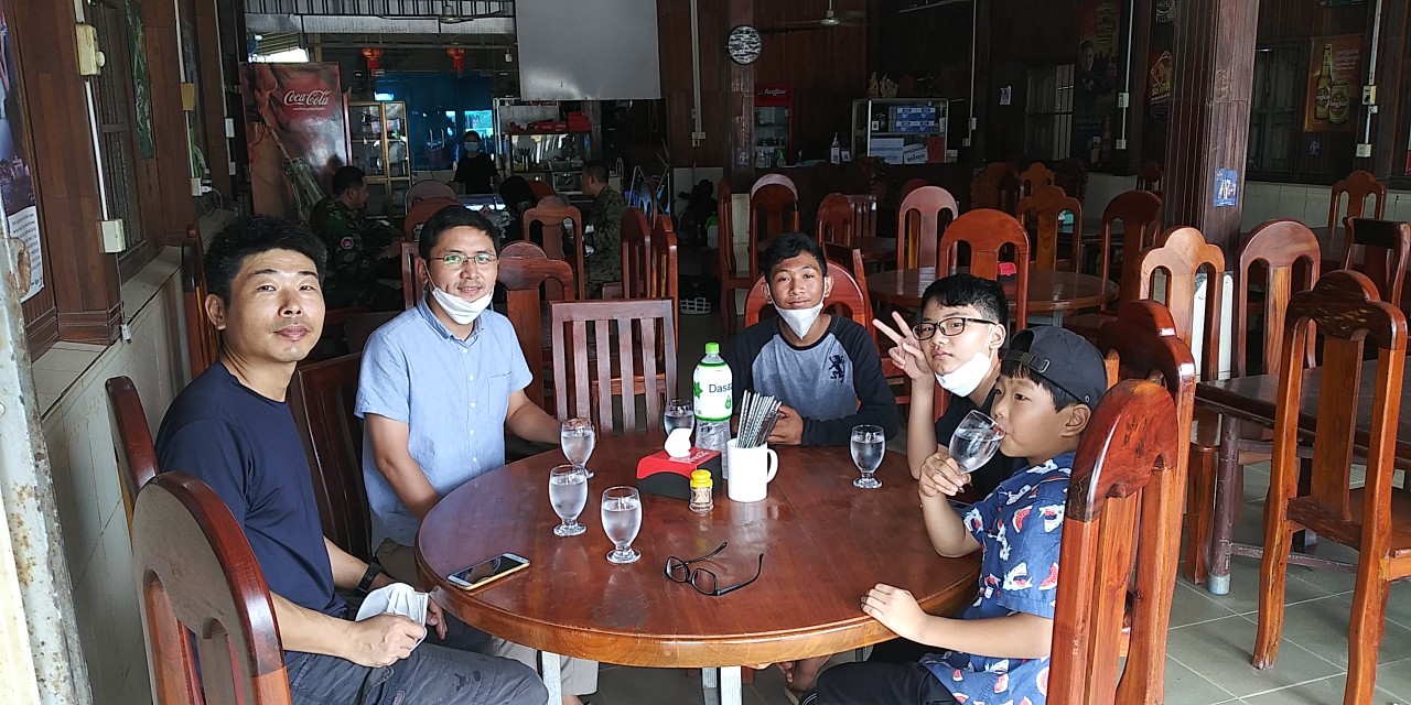 참 이렇게 14세 16세의 소년들을 통역으로 세우시면서 자신의 부모를 상대로 (혹은 부모를 연상하면서)사역을 하게 하시는 오묘하신 하나님. 또한 우리모두에게 부부관계를 다시금 말씀대로 정립하도록 하시는 그러한 시간이었습니다. 이 세상 살아가면서 어느나라 어느 고을에나 존재하는 이 불화와 갈등. 그 속에 우리의 등을 떠미시고 회개하고 화해하라고 이 코로나속에서도 몬순계절에도 열심히 일하시는 성령님. 이 소년 신학생들의 도움으로 사역을 잘마치고 스마따잉에들러 시타(솜판 사역자의 아내)음식점에서 식사하며 시타와 딸 리디아를 만나고 KBS로 돌아왔습니다.