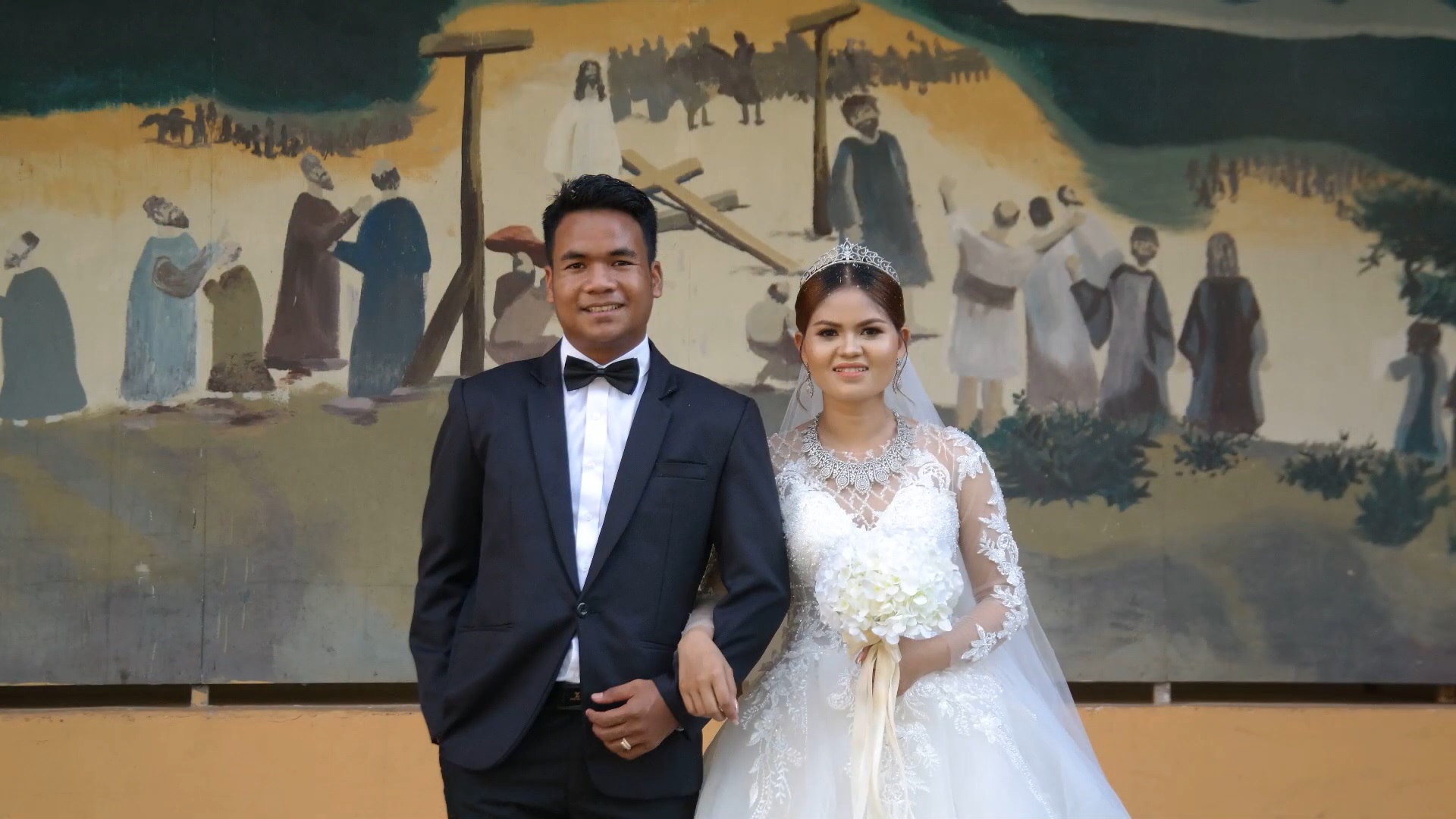 តើអ្នកនឹងទទួលនារីនេះ ជាប្រពន្ធពេញច្បាប់របស់អ្នក ហើយរស់នៅជាមួយគ្នាបន្ទាប់ពីការតែងតាំងរបស់ព្រះនៅក្នុងពិធីមង្គលការដ៏បរិសុទ្ធនេះទេ? តើអ្នកនឹងស្រលាញ់នាង លួងលោមនាង ស្មោះត្រង់ ហើយថែរក្សានាងទោះបើឈឺឬជា ហើយមិនរវល់នឹងបញ្ហាផ្សេងៗ តែរៀបខ្លួនអ្នកសំរាប់តែនាងម្នាក់គត់រហូតដល់ ចុងជីវិតរបស់អ្នកទាំងពីរឬទេ?