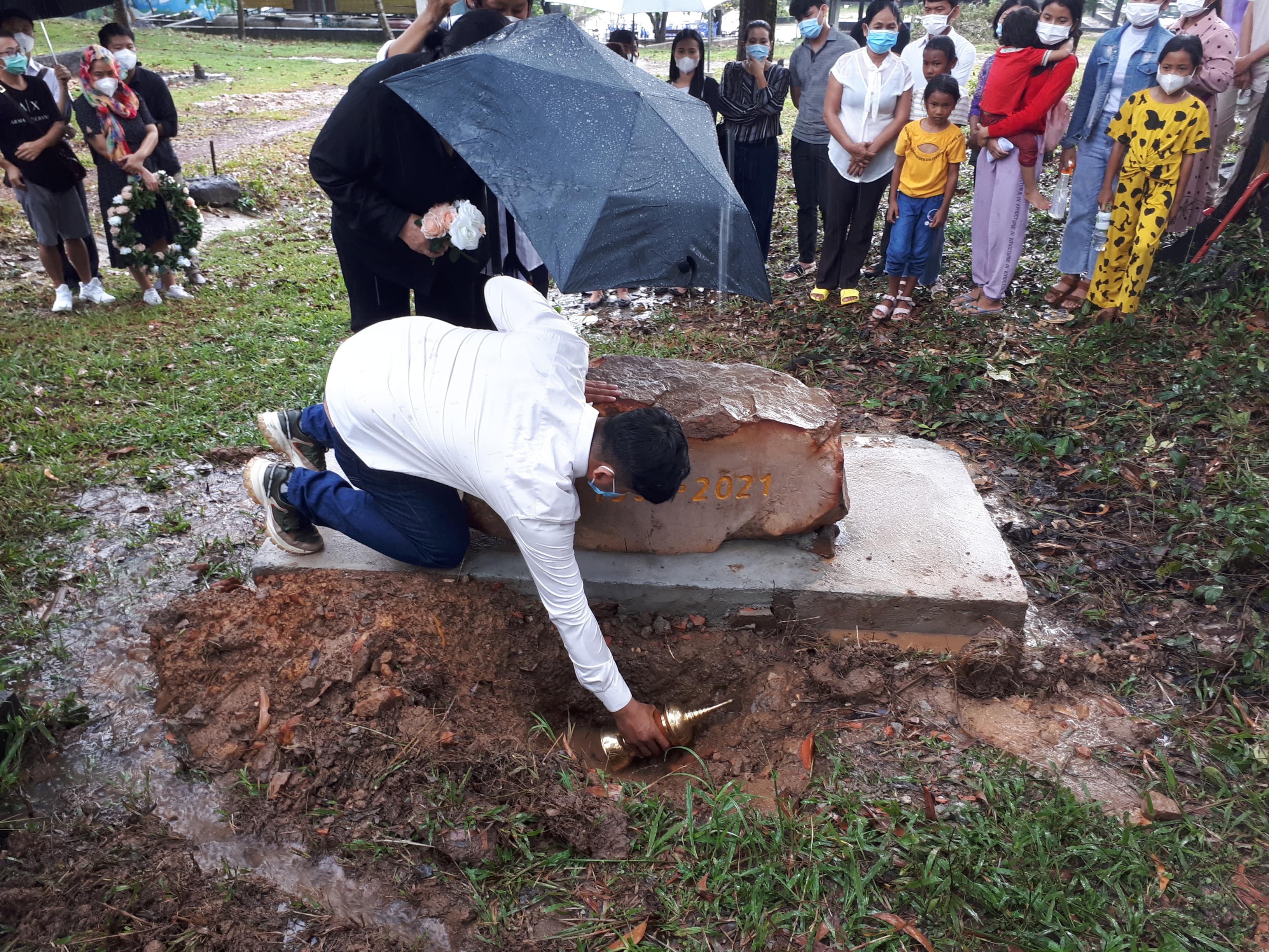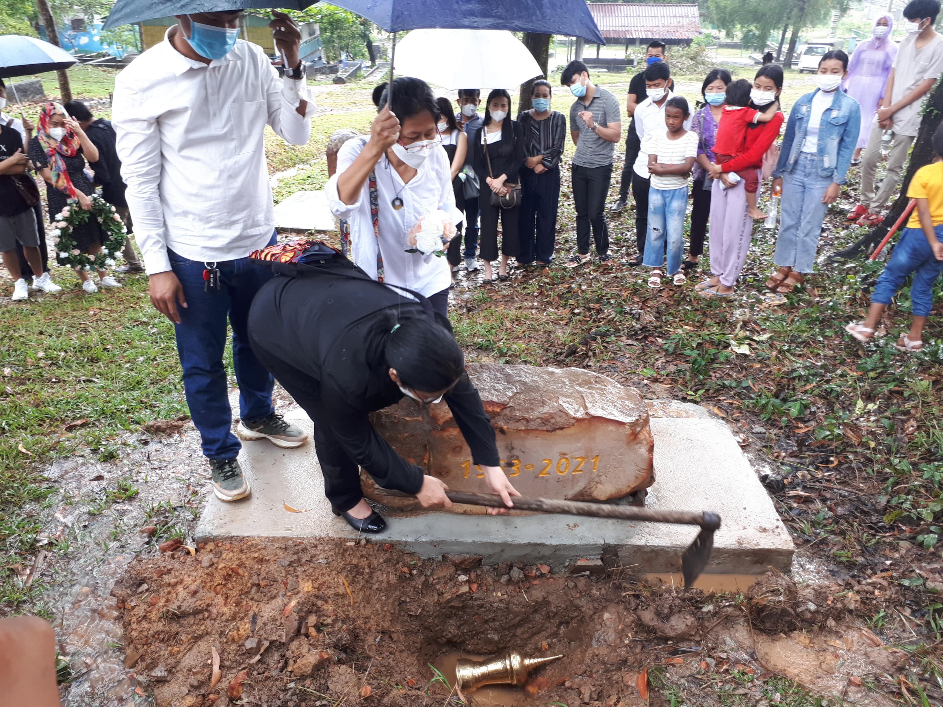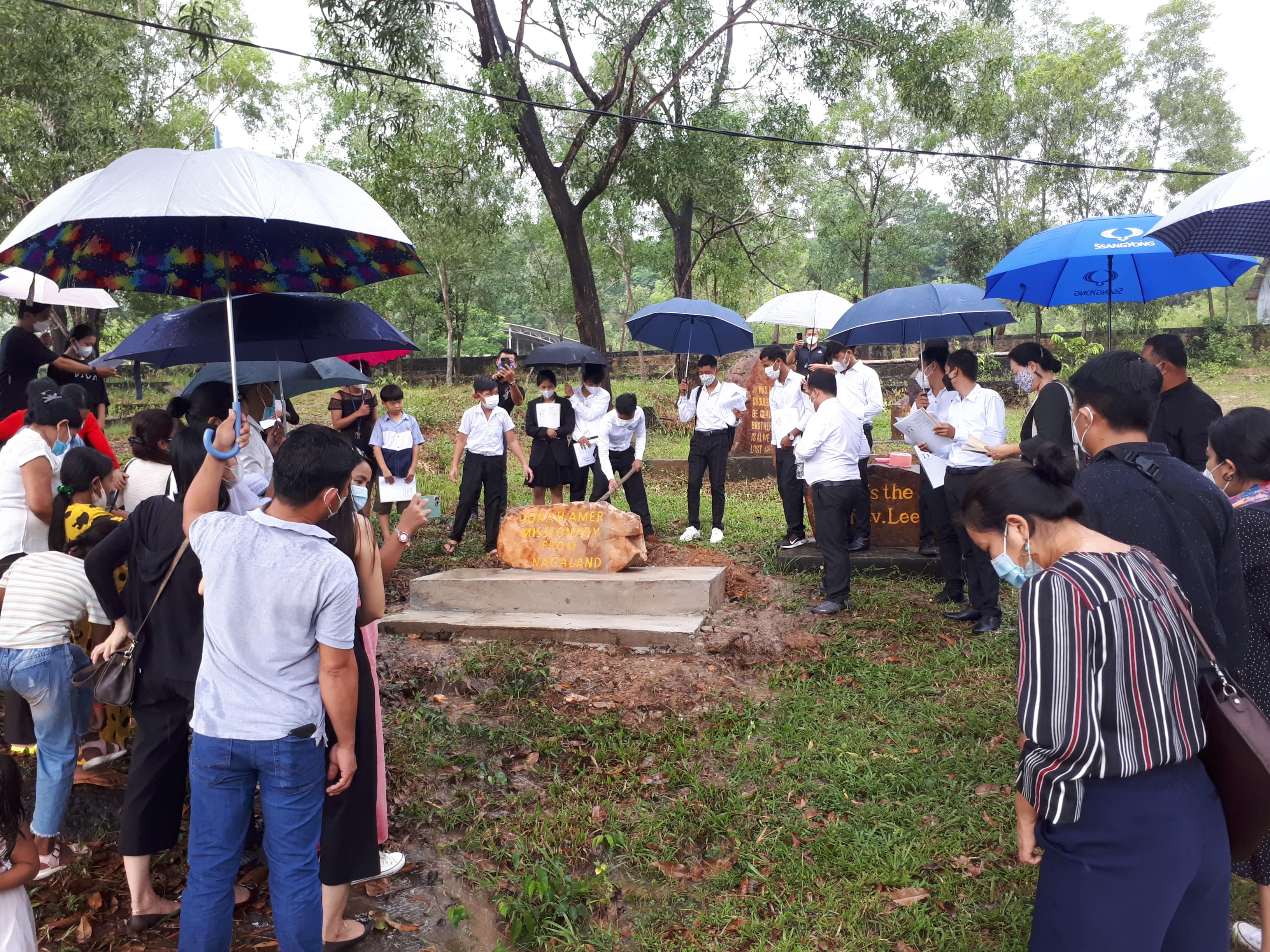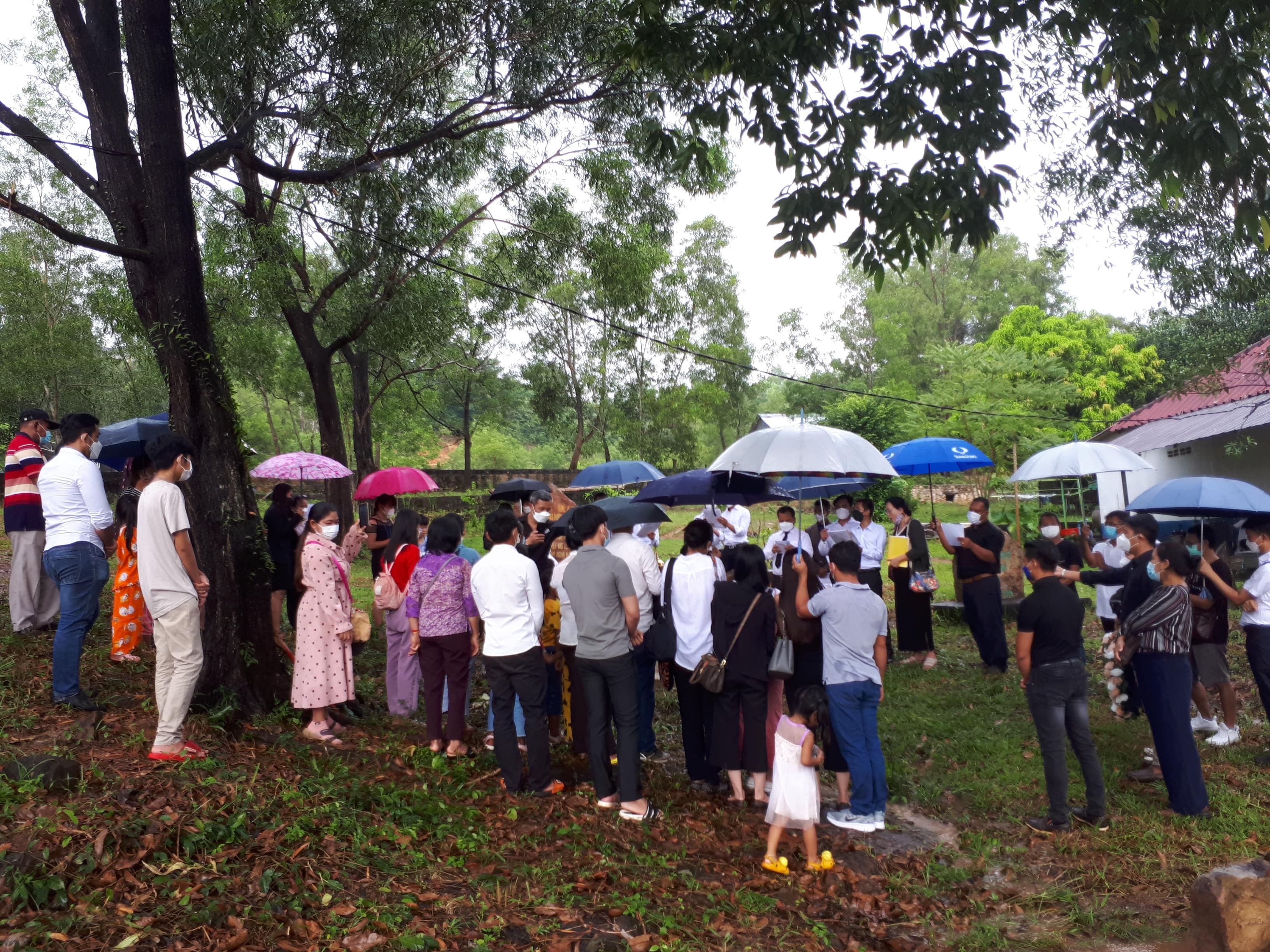 요나목사님은 11월 4일 코로나로 병원에서 아내분과 대면하지도 못하고 몇일만에 돌아가셨읍니다. 아내분에게 최대한 병원 가까이와서 얼굴이라도 한번 보고싶다는 문자를 남긴후 의식을 잃었다고 합니다. 예배후에도 비가 계속 많이와서 점심을 먹으며 교제를하고 비가 좀 멈춘 틈을 타 기념비로 행열을 맞춰 걸어가서 분골을 기념비 뒤에 묻었읍니다. 캄보디아 내에 45명의 나갈랜드 선교사및 그들의 식구가 살고있읍니다. 요나선교사는 제일 선임자였읍니다. 누가복음 10:1-2 의 말씀으로 그가 20년전 캄보디아에 온것은 추수할 일꾼이 적다는 주님의 음성에 순종함이요, 이제 코로나시대에 그의 죽음은 우리 선교사와 복음사역자들이 주님의 추수밭으로 ( 우리의 회개를 통해 사람들의 죄를 드러내고 온전한 말씀을 가르치고 그리스도의 사랑으로 품는 일) 들어 가야한다는 하나님의 큰 음성 이라고 설교했읍니다.