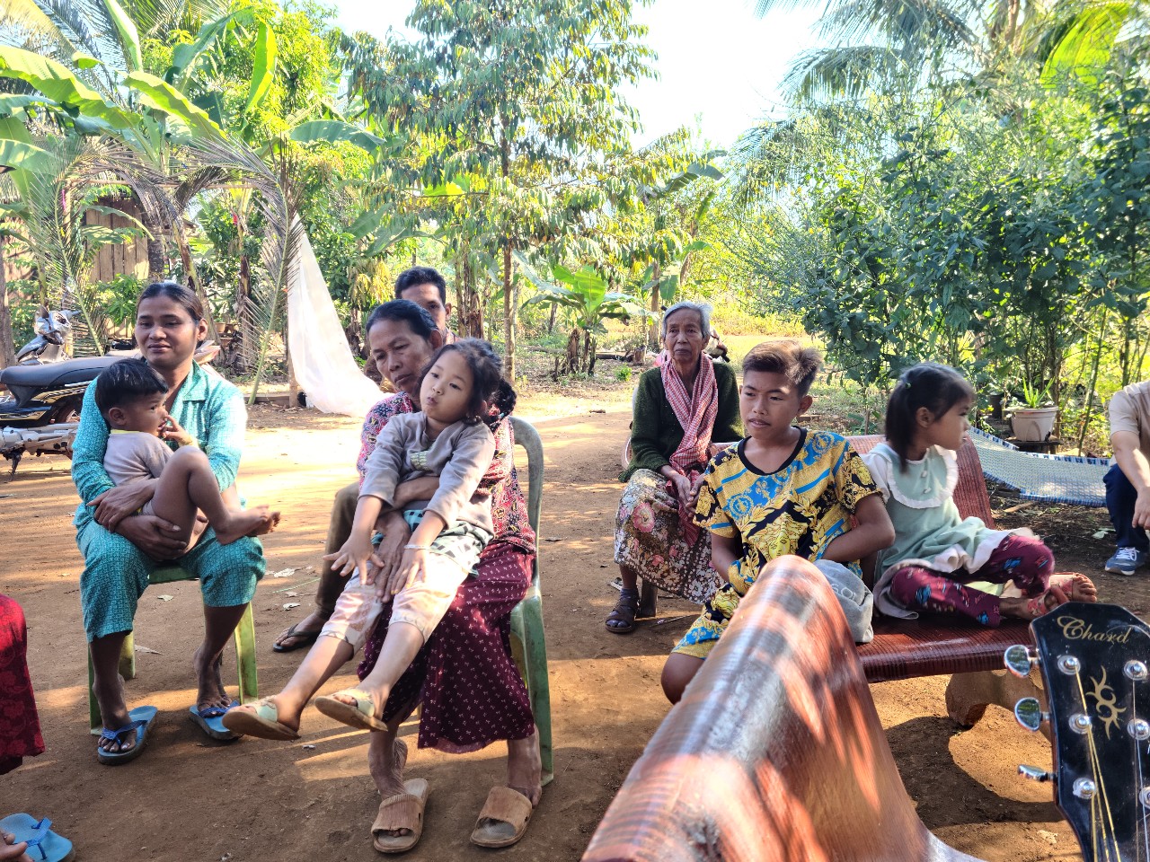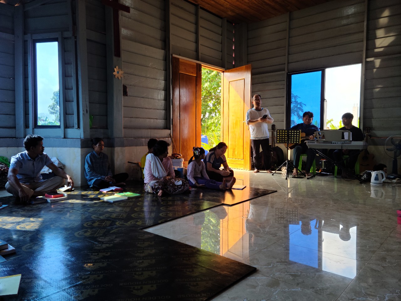 오늘 주일 아침에는 교회에서 얼마 안 떨어진 뜨로빼앙쁘로 마을에 있는 쨘팀 자매 집에가서 거기서 첯 예배를 드렸읍니다. 어른만 거의 20명정도가 왔읍니다. 이종보 선교사님이 돋보기를 나누어 주면서 그 마을 사람들이 복음에 관심을 가져 사렛학생과 김재호목사님 이종보선교사님과 같이 참석했읍니다. 그 길을 따라 50가구 정도 산다고하고 어떤 사람은 kbs 지을때 오쁘람에 살면서 일꾼으로 kbs에서 일한 적이 있다고 했고 사렛형제가 The Way to Heaven 전도지로 구원의 도리를 설명하고 이종보 선교사님이 다음 주일부터 예배에 빠지지 말고 참석할 것을 권면했읍니다. 짠팀자매는 코로나로 학교가 중단되었을 때 kbs에서 한달간 공부했고 이제 12학년이며 그의 부친은 지금 48세인데 1992년 크메르루즈와의 전투를 위해 트모방에 왔다 전투가 끝나고 다른 군인들은 다 돌아갔는데 그냥 남아 지금까지 살고있읍니다. 거의 모든 사람이 큰 농장을 하며 두리안. 사와삽. 아보카도. 코코넛등 과실나무를 재배하며 살아갑니다. 이 동네도 Christian Community 로 잘 성장하기를 기도합니다.
