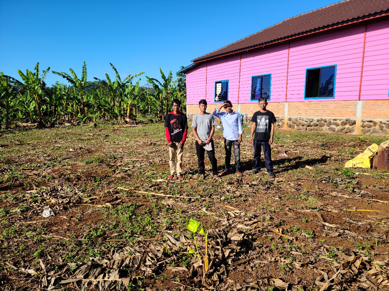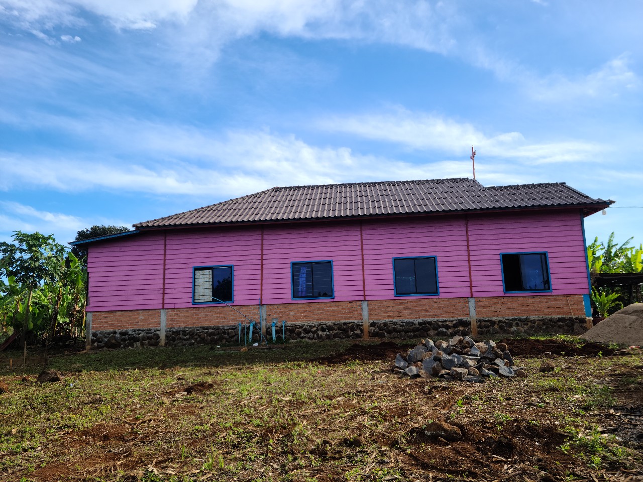 건축중인 예배당 뒷쪽을 지금 빠나나 나무를 뽑아내고 정지 작업을 하고있읍니다. 이곳에 기술학교(이미용. 중장비. 실내 인테리어. 외국어학당. 목공....)가 곧 건축되면 좋겠읍니다. 이제 정말 추수기가 한창이므로 이 트모방 청년들을 그리스도의 용사로 만들어야 겠읍니다. 도회지의 사람보다 훨씬 순수하고 열정과 힘이 있어 마지막때 크게 쓰임을 받으리라 생각합니다.