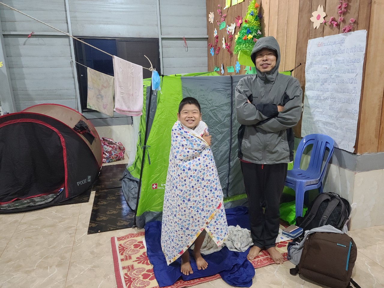 소넴사역자가 벌써 건축예정지의 바나나 나무를 옮겨놨읍니다  KBS 목수 4명 이들의 실력을 기대합니다. 이곳에 도착하자마자 소넴 사모의 순산 소식이 들려왔읍니다. 식탁을 임시 침대로 사용하고 KBS 아줌마가 장에가서 찬거리를 사오고 돼지고기가 많이 비싸다고하고 가져온 정수기를 설치해 이 물을 마실 예정입니다. 요새는 날씨가 안춥다고 하네요. 소넴 남동생만 교회를 지키고있읍니다. 버스를 타고온 4명은 오다가 버스 고장으로 2 시간 기다렸다합니다. 이들은 스라에엄벌에서 부터는 솜판 사역자 차로 왔읍니다. 똥안 선생 가족은 우리를 내려주고 가족 여행을 떠났읍니다. 내일부터 일을 시작합니다.
