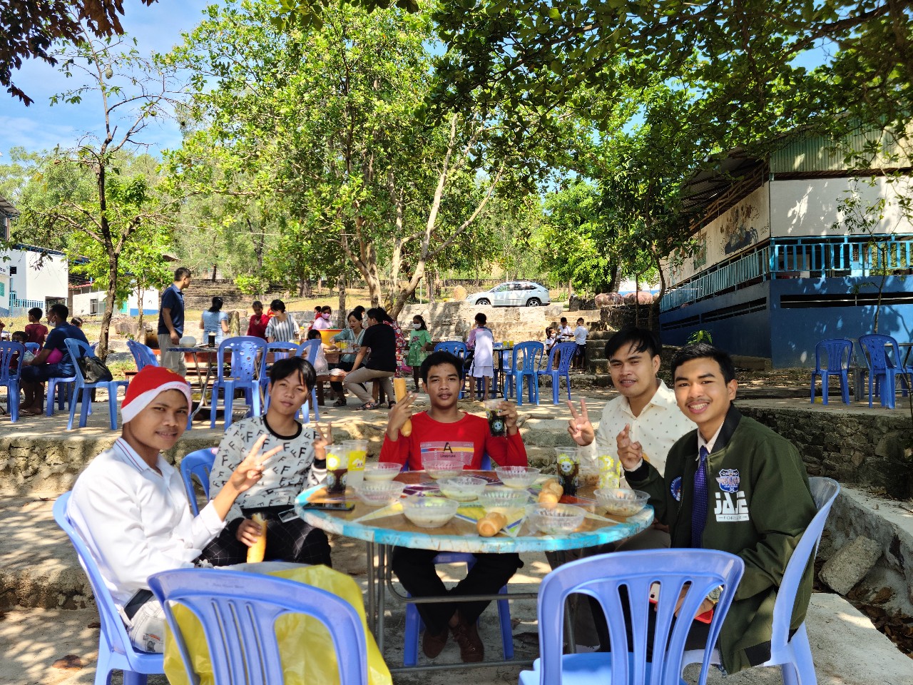 덥지도 않고 따뜻한 아침햇살에 아이들 소리가 벌써부터 들러온다. 예쁜 옷 입고 학교. 예배당. 운동장을 뛰어다닌다. 크리스마스는 단연코 어린이들의 잔치다. 똥안선생의 설교. KCS. KBS. 춘후이가족. 지선교사님 가족. 발표후 예배를 마치고 곧바로 보보 삿모안을 먹으러갔다. 큰 나무들 밑에 차려진 크메르 죽을 맛있게 먹고 선물을 나누고 1시경 마쳤다. 남아서 계속 노는 아이들. 무궁화 꽃이 피었읍니다 놀이를 한다. 한국은 오늘 무척 춥다고 하는데.. 여기서는 따뜻하게 야외에서 닭죽을 먹으며 애들과 놀고 걱정 근심없는 풍경이다. 이렇게 올 한해도 지나가는구나. 코로나로 사람 왕래를. 교제를 막던 불편한 일들이 오늘 이 크리스마스의 자유로움과 즐거움으로 다 해소된 기분이다.