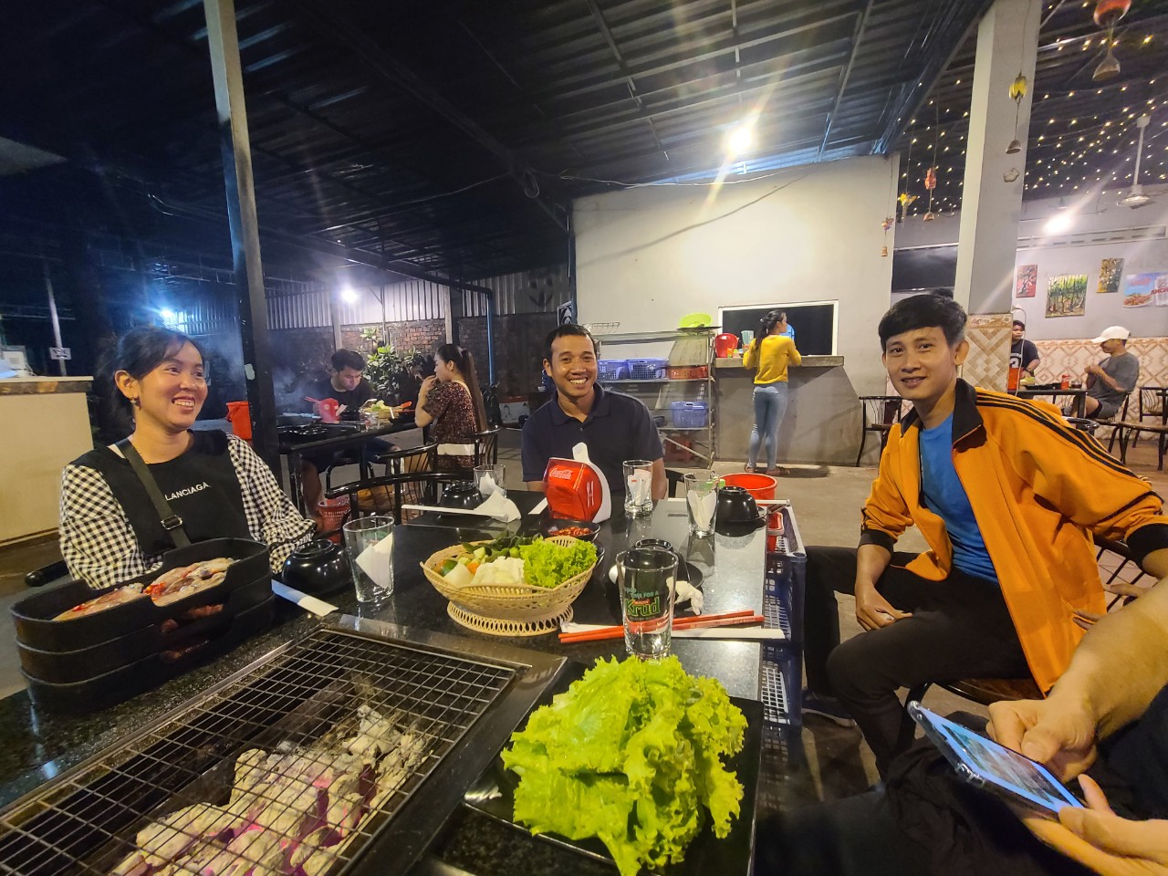 저녁에는 BBQ 식당에서 푸이밍 선교사, 렐리.니쎄.가브리엘 선교사가족. 라비.쩬다.다윗 가족, 비살.속하.오돔 가족. 분나릇, 로타 사역자와 만나 교제를했다. 푸이밍선교사는 케냐, 라오스에서 10년간 선교했고 라따나기리. 쪙꼬에서 선교하다 다시 라따나기리에서 지비량 선교를한다. 렐리 선교사는 2010년 11월 Nagaland 에서  KBS로 와서  교수사역을 시작해서 7년간 하고 2017년 11월 라따나기리로 와서 소수민족및 현지목회자 교육, 신학교육을 담당한다. 로타 사역자는 보리아 사역자가 세운 Love Church를 이어받아 홍콩교회의 후원으로 목회를 담당하고 분나릇 사역자는 렐리 선교사와 동역하고 내년에 스바이리엉에 있는 자매와 결혼할 예정이고 비살형제는 KBS에서 속하 자매를 만나 결혼한후 자매 고향인 라따나기리에 와서 KB 국민은행 반룽지점에서 근무하고있다. 여기서 이렇게 많은 KBS식구를 만날줄은 생각을 못했는데 풍성한 교제를 했다. 이곳에도 Christian Community 를 할 수있는 때가 무르익었다.