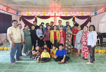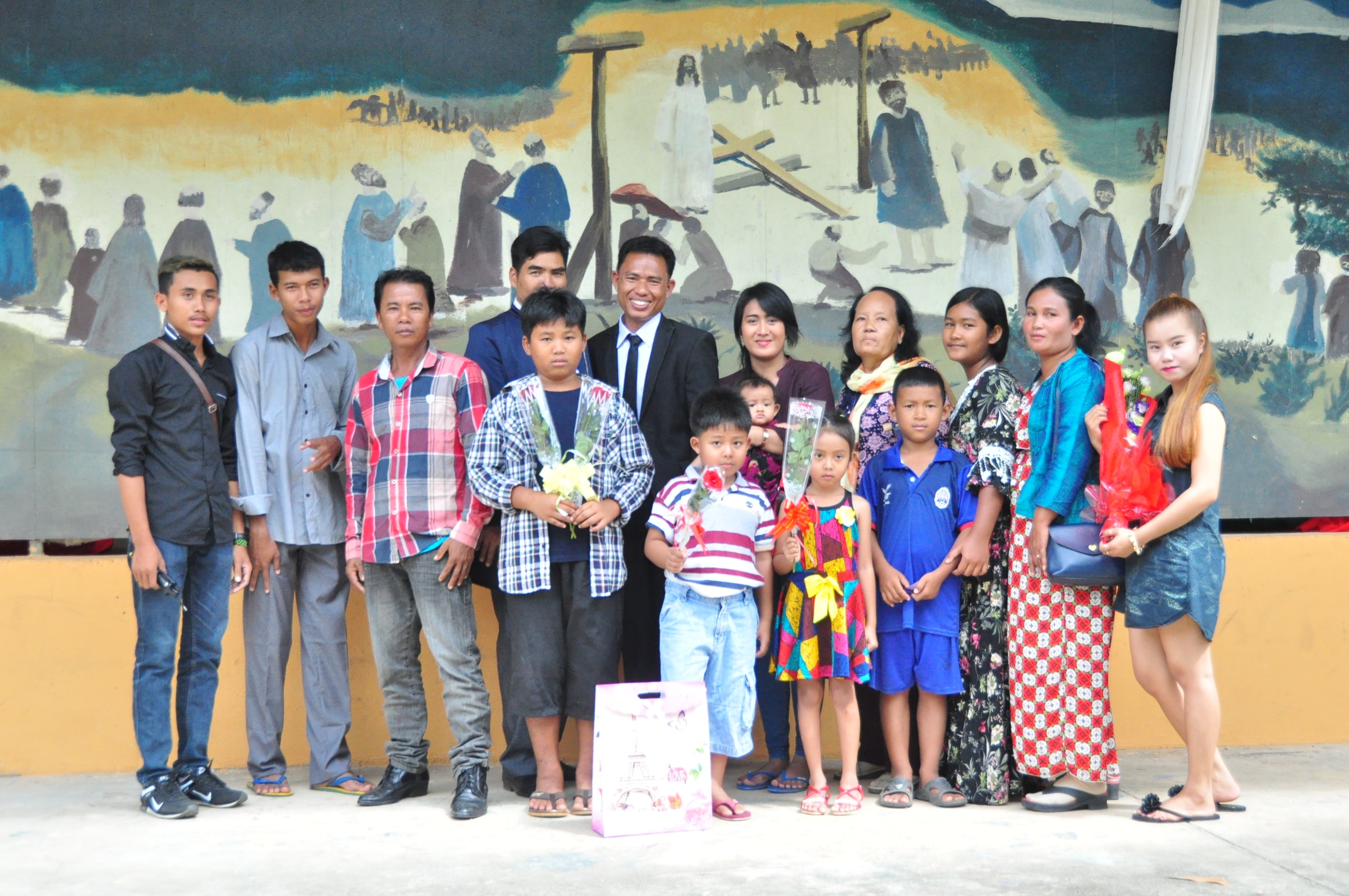 3. Serving God in Pailin: When I first came to serve in Pailin, I was very disheartened sometimes 3, sometimes 4 to 5 people come to church, and I always talked to my wife, asking Rev. Moses to switch to work in another province, because in Pailin we did not know much about the people. On the other hand, the people around the church always say bad things about the pastor, and they do not like new preachers, they always say that evangelicals are bad greed like the same. However, living in Pailin for almost a year, I was always thinking of setting my mind to the point that I was getting married and really struggling to spread the gospel. people hate it, scorn it, throw stones at the roof of the church. But I remembered a scripture that encouraged me greatly, Philippians 4:13 "I can do all things through Christ which strengthened me." Thanks to God day by day, we always pray, and the first step is not to preach the good news, stay in touch at their homes, and near the church, only when we are very close and we start to tell Jesus stories, and some even believe in worshiping with us. Later we started to visit them almost times. And every Thursday, we met, prayed, and read the scriptures. On Saturday, continued to visit, encourage them to come to church. And Sunday we start Sunday school for little children from 7:30 to 8:00 and 8:00-8.30 Sunday school lessons for older people. 9:0010.30 we begin to worship God together. So far, God has responded to us consistently, with consecutive church-worshiping churches, with 35 children, 10 young musicians praising Gods, and 45 to 50 adults to worship God every day. In addition, I always encourage them to read the Bible daily by reading 1 day at least 3 chapters, with a one-year reading period, both for the Old and New Testaments, and I will always be rewarded with reading the book