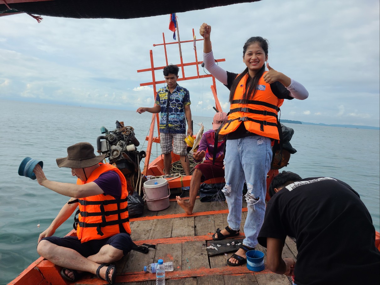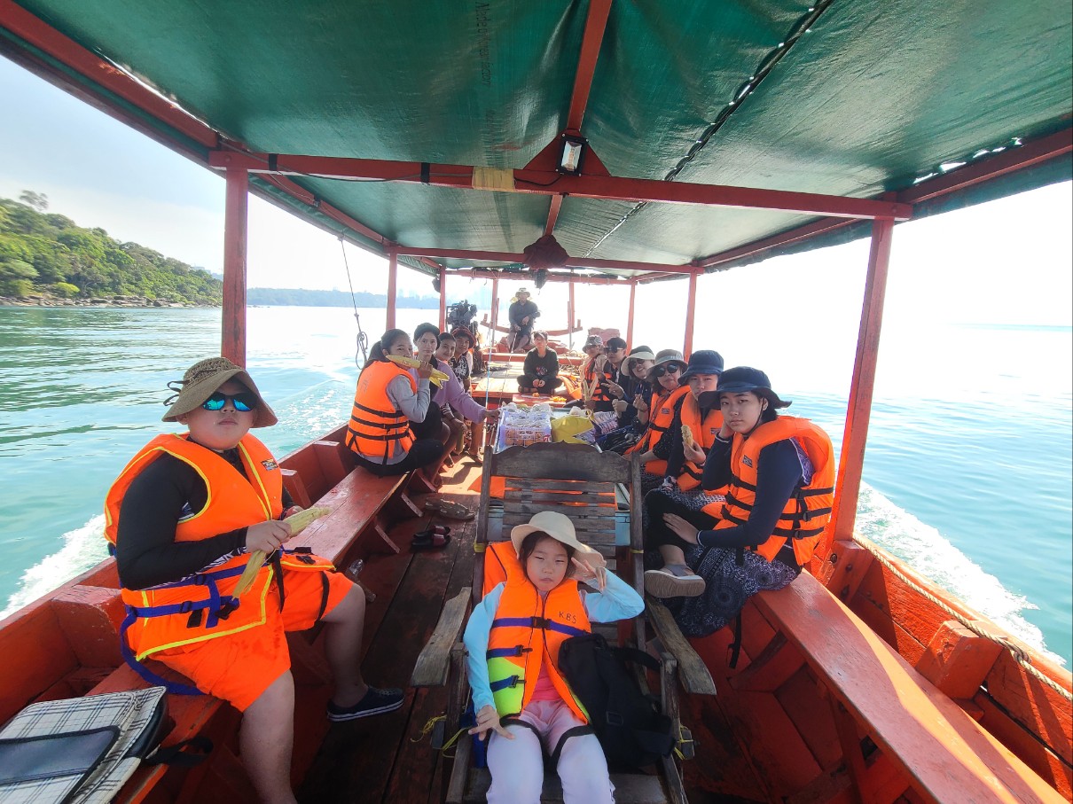 11월에 이형환목사님이 오셔서 학생들과 배를 빌려 낚시를 나가서 물고기를 30마리는 잡은것같다. 너무 재미있어서 은주자매가 12월에 방문해서 낚시를 가쟈고해서 은서, 우진, 세아,수아, 캄.학생들 해서 20명 가까이 또 배를 빌려 낚시를 나갔다. 그런데 한마리밖에 못잡았다. 다른데로 배를 대었지만 조용하다 다른 장소를 찿다가 섬에 바로 가까운 곳에 배를 대고 낚시를 하려다 학생들이 하나 둘씩 바다로 뛰어드니 한국 학생들도 구명쪼끼를 입고 들어가고 캄. 여학생들도 구명쪼끼를 입고 들어가 섬까지 헤엄쳐 가서 바위에 앉아 놀고 수영하고 즐거운 시간을 보냈다.