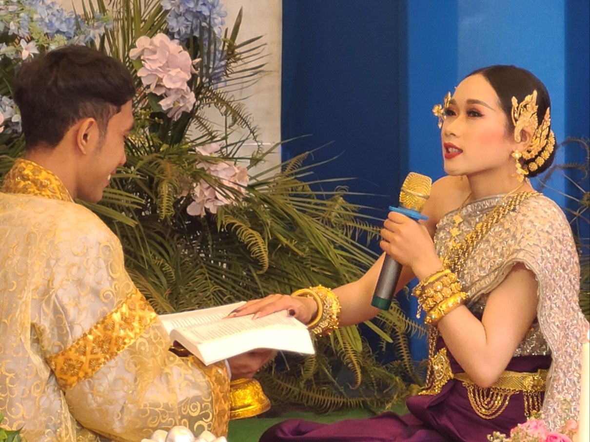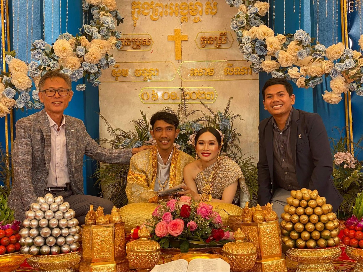 새벽 기도 시간에 시편 121편 나의 도움이 어디서 올꼬, 천지를 지으신 여호와에게서 오리라. 말씀을 가지고 현실 생활의 어려움을 이겨 나가자고 권면했다. 소넴사역자가 그간 어려운 가운게 굳건히서서 오늘까지 왔는데 생활고 때문인지 최근 Wing을 한다고 그 속에 온종일 앉아 있다고 하니 참 답답하다. 소넴 모토를 타고 30분정도 산길을 달려 쫌까째익 결혼식에 참석했다. 전통식을 위주로한 예식이다. 신랑.신부.그리고 양가집 부모들이 같이 앉아 과일를 한가득 같다놓고 전통음악에 전통무를 추며 계속 대담식의 이야기를 주고 받으며, 또 과일을 하나씩 꺼내 보이기도하고, 양가 부모가 같이 바나나를 먹기도하고, 촟불 의식, 등등 많은 절차가 있다. 나는 말씀을 전했고 캄퐁톰에서 온 소쿤목사가 전통의례를 주도했다. KBS 출신인 여러 친구들이 참석했다. 이들은 신랑 심반나와 같은 때에 KBS에서 공부한 친구들이다. 신부인 리나 자매는 솜판 사역자 여동생이고 일곱 형제 자매중 여섯번째이다. 꼬꽁에서 여러 사역자가 참석했고 스라에엄벌의 속모노목사 부부도 왔다. 햇볕이 별로 없어 예식내내 덥지 않았고 식사때는 KBS출신 테이블에서 같이 먹으며 근황을 물어 보았다.어제 차 한대로 출발해서 스라에엄벌 스언사역자 집에서 하룻밤 자고 오늘 이리로 왔다고했다. 완니. 소넴.솜판. 쏘비엣. 속옝. 마린은 결혼했고 테드. 뽀아임은 아직 미혼이다. 식사하면서 트모방 Christian Community 에 대해 설명했다. 뜻이 있으면 같이 동참하라고 했다. 2012년 똔나사역자가 KBS를 졸업하고 쏘키어 여학생과 결혼해서 바로 이곳 트모방 쬼까째익 마을에서 한쪽벽도 없이 트인 방하나 달랑 있는 덜 지어진 공간에서 부엌도 화장실도 없이 사역을 시작했는데 이제 솜판 사역자, 끔산 사역자에 이어 리나자매도 사역자 사모가 되어 사역의 열매가 맺혀져간다. 신혼부부가 선물로 준 과일바구니를 받아 소넴 모토로 다시 그 산길을 따라 트모방 비젼교회로 돌아왔다.