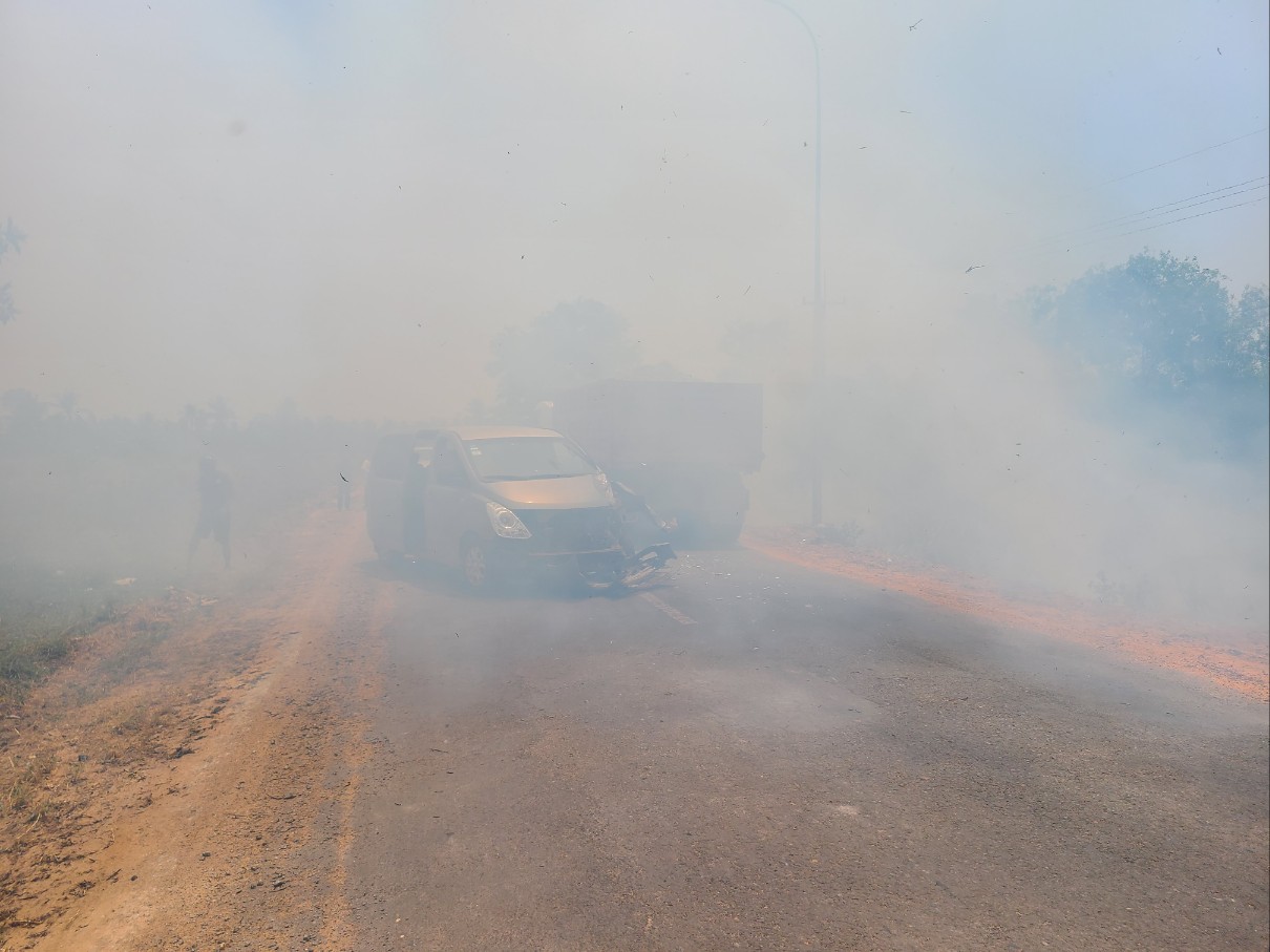 식사후 나오다가 한치 앞이 안보이는 짙은 연기속에서 충돌사고. 길가에는 마른 갈대.풀을 태우는 화염이 번지고. 전장을 방불케하는 상황. 인명피해는 없었음. 한치 앞을 알수없는 이 시대를 예표하듯 또 어떻케 준비하여야 하는지를 우리에게 생생하게 가르치는 수업현장.