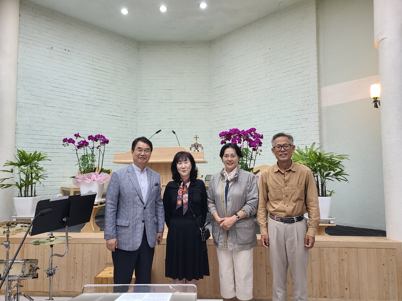 우중에 짐을 내려 교회 방에다 놓고 간식을 먹으며 명지교인들과 교제의 시간을 가졌다. 우리를 기다리느라 늦은 시간까지 교회에 계셨다. 서로 자기 소개를하고 원로목사님이신 황규완목사님의 30년 사역의 간증을 들었다. 군출신으로 조금만 더 복무하면 연금이 나오는데도 예편하시고 믿음으로 사역을 시작하시고 꿈에 본대로 교회 부지를 구입하고 오랬동안 기도하니 옆에 있던 세개의 절들이 다 없어지고 30년간 하루도 안빠지고 종탑방에서 기도하신 이야기, 죽을 병에서 고침받은 이야기를 들었다. 임장로님이 몸이 좀 불편하시다 해서 명월초를 소개해드렸다. 요사이 KBS에 명월초로 인해 많은 사람의 건강이 호전돼고 있어 장로님도 오셔서 자립형 장기사역을 하시면 좋겠다고했다. 명지교회는 트모방의 쬼까째익 교회를  처음부터 후원해오고있고 코로나전에는 매년 단기선교를 나와 그 교회에서 숙식하며 선교활동을 해왔다. 아침일찍 바로옆에 있는 대구고등학교를 우산을쓰고 교정을 둘러보았다. 교련복.교복 검사를 하던 정문, 그당시 목조건물 자리, 운동장 테니스장, 강당, 나의 친한 친구 평행봉.철봉자리,배구장 모두 바뀌었지만 그때 정서와 꿈은 지금도 새롭다. 수업을 마치고 항상가던 학교앞 육체미 도장, 높은 담을 담치기하던 곳, 바로 그곳에 명지교회가 들어섰다. 담이 높아 뛰어내리면 다리를 다칠수있는 높이였는데..젊음의 오기..인생은 모험이 필요하다. 불신에서 믿음으로의 모험은 가장 큰 용기이고 성공적인 시도인것을 이제 알게된다. 지루한 헉업에서 벗어나 어디서 좀 재미를 보기위해서도 담치기라는 모험이 필요한데, 사망에서 영생이라는 그 큰 복을 얻기위해서는 생명을 거는 모험이 필요하다.   서일교회 김동욱목사님이 장로님들과 명지교회로 오셔서 같이 교제하며, 서일교회가 땅문제로 고소를 당해 돈을 물어주게 생겼는데 서류를 떼어보니 하자가있어 오히려 큰 금액을 보상받게되어 그것으로 새성전 건축을 할수있게되어 내년에 완공한다고하셨다. 대역전의 간섭하심이었다. 하나님의 간섭하심이 없이는 어느 사역지나 넘어지고 좌절할수 밖에없다. 이 교제를 통하여 도전받고 격려받고 힘을 얻고, 기쁨으로 하나되고, 성령의 교통하심을 체험한다