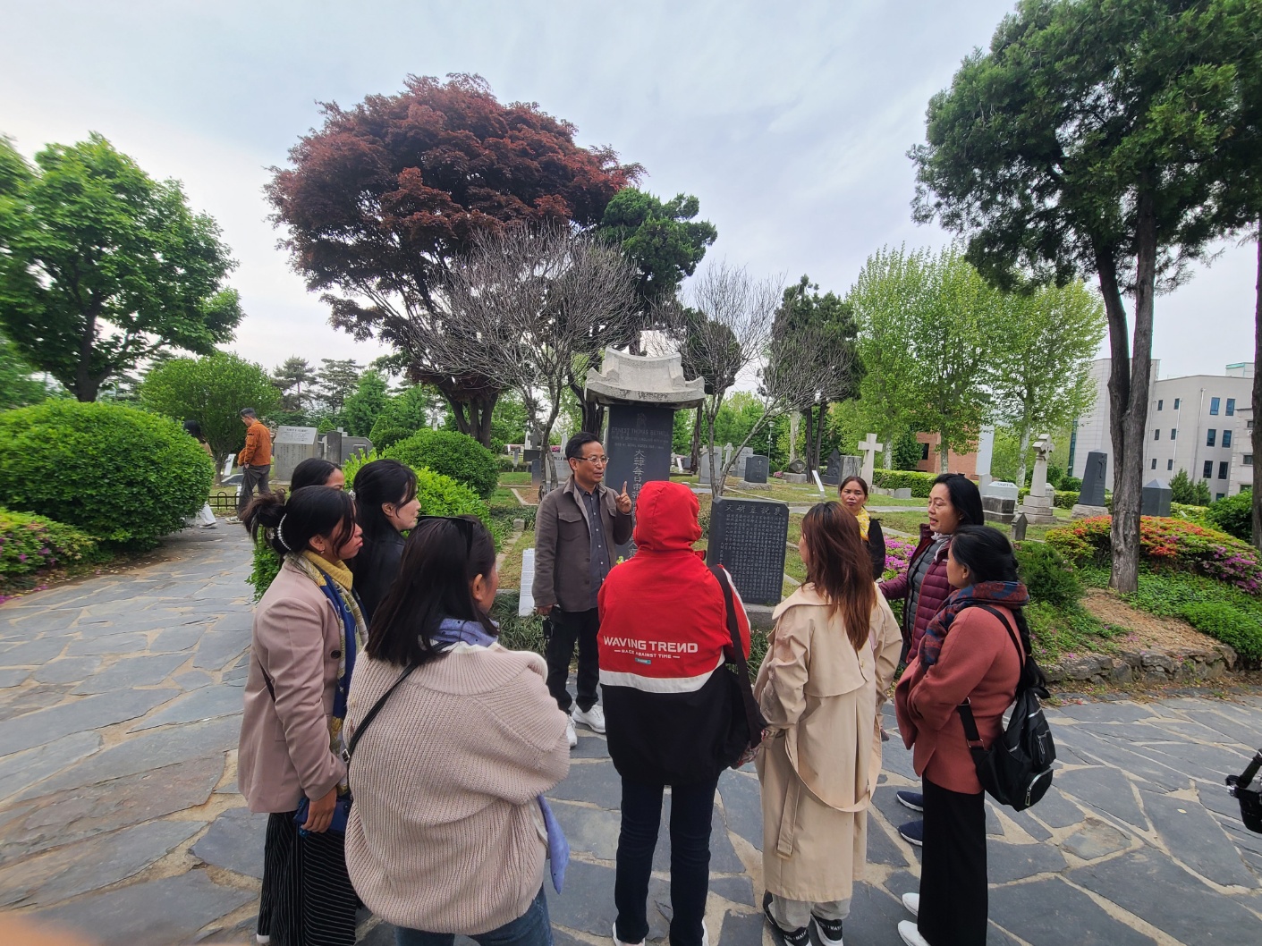 소명교회에서 잠간 눈을 붙인후 전해일목사님.사모님 안내로 양화진에 갔다. 많은 무덤과 돌묘비, 거기에 새겨진 이름들, 사역들, 하나씩 둘러보며 이들이 밑거름이 되어 오늘날의 한국의 축복이 있음을 설명하고, 지금 캄.사모들이 하고있는 수고와 눈물이 결국 캄보디아 교회와 나라를 일으켜세울 것임을 설명했다. 한국인보다 더 한국을 사랑한 이들, 남편이 죽고 자녀를 데리고 선교를 이어간 여인들, 젊은 나이에 이국땅에 묻혀야한 사람들, 풍토병으로 자녀들을 잃은 사람들, 이 무언의 무덤과 돌들은 큰 메시지를 캄.사모들에게 전하고있었다. "인내하고 충성하라, 하늘의 상급이 클것임이라" 강바람은 쌀쌀했지만 이네들의 마음과 눈시울은 뜨거웠다.