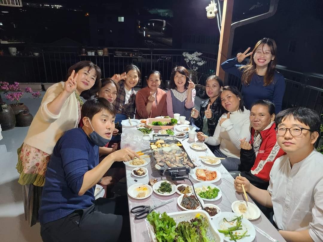 다음날 주일 오일교회에 가서 예배드리고 나는 갈렙이 전심으로 하나님 섬기는 것을 설교했다. 이미 가나안을 준다고 약속했는데 정탐하고 와서는 인본주의 사고가 작동해서 하나님께 반역하는 모습에서 오늘날의 교회모습이 그대로 나타난다. 끝까지 충성, 끝까지 전심으로, whole heartedly,.. 예배후 즐거운 교제가 이어졌다. 2011년경 대한이가 중3을 마치고 지환이와 같이 와서 1년간 KBS에서 공부하면서 이번에 온 사모들과도 친분이 있어서 바로 분위기가 뜨거워졌다. 최병진장로님.김철희권사님의 4 자녀인, 참, 조은, 우리, 대한. 이 온 가족을 오일교회에서 만나고 조은이도 대학생때와서 KBS에서 얼마간 생활하고 이제는 공무원을 하며 결혼도했다. 김재규집사님.김영숙권사님도 여러번 캄보디아에 오셨고 몬돌기리에서도 좀 생활하셨다. 복용교회 멤버들은 벌써 안지가 15년이나 되고 한국 방문때도 종종 만나고, 친밀한 관계가되었다. 식사후 멋진 호수 풍경이 있는 까페에서 지난 선교이야기.사업.가정이야기 하는동안 사모들은 호수를 배경으로 사진찍느라 분주하다. 저녁에는 아구찜을 사주셔서 다 못먹고 포장을 해서 증도 엘도라도에 가져갔다.