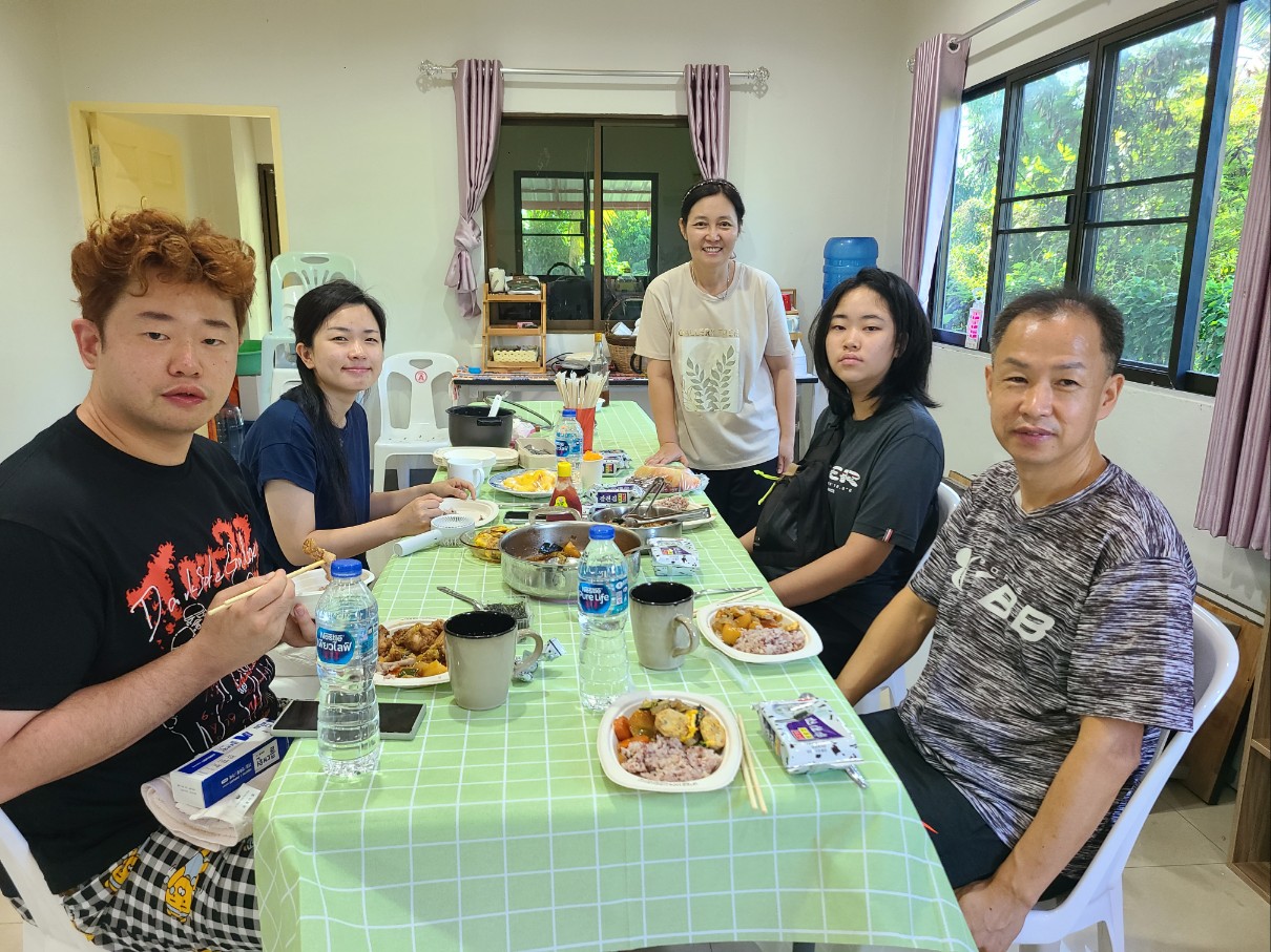 아침 기도회에 홍미자매가 2 Tim 3:15-18 말씀으로 전하면서, 태국사람들이 불교로 인해 모든것을 수용하는 것을 덕으로 인식하고 세상의 모든 것을 진리의 관점이 아닌 똑똑함, 편리함, 중도타협의 관점에서 봄으로 인해 사망으로 빨리 달음박질하고 있음을 지적하고 시간은 그냥 흘러가는것이 아니라 천국이라는 집에 이르기까지 성숙을 위해 존재함을 강조하고, 이 땅의 삶이 거기로 매진할것을 이야기했다.