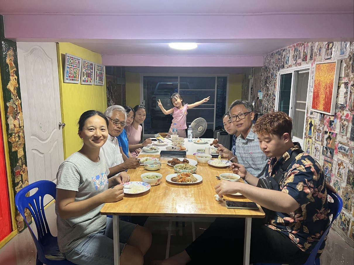 기도회를 마치니 박선교사님이 와계셨다. 서로 소개하고 르메르디안 호텔로 갔다. 식사를 하며 사역 설명을 들었다. 박선교사는 동현이 학교 친구의 부친으로 2010년 방콕에서 평신도로서 사역을 시작하시고 2019년 챵라이로 옮겨 탈북자 복음사역을 하셨다. 챵라이에 50 unit의 한인 선교사들이 있다고 하셨고 지금 센터에서 연합사역을 하시고 또 스포츠사역을 위해 기도중이며 좋고 싼 부지가 나와 그것을 확보하시길 기도하시고 있다고했다. 직장생활을 20년 하시고 자비량으로 거의 선교하셨고 최근 목사 안수를 받으셨다. 멋있는 호텔에서 부페를 대접해주셔서 식사후에도 멋있는 강가의 풍경을 배경으로 사진을찍었다. 탈북민 선교의 생생한 사역을 듣고 태국 선교의 전반적인 상황과 앞으로 젊은이들을 통해 돌파구를 열어가기위해 스포츠선교를 특별히 간구하신다. 챵라이 에서는 신학교 사역, 기숙사 사역, 센터사역, 이런 카테고리로 사역이 이루어 지고있고 미안마인 상대로 하는 사역, 중국인 사역, 소수민족 사역등 다양한 사역이 있고 이곳이 중국과 가까워서 할아버지 세대 이전부터 많은 중국인이 넘어와서 이곳에 살며 태국 국적을 가지게되어 중국어 하는 사람이 많다. 최근에도 해외투자나 교회핍박으로 중국인들이 많이 넘어온다고한다. 점심때는 시내로 나가 스피앤과 선교사에게 줄 선물을 사고 선교관으로 돌아와 조금 쉬고 있으니 태국 사역자 리쯔량 (니폰)과 홍콩에서온 위니가 와서 같이 이야기했다. 리쯔량은 부친때 중국에서 태국으로 건너와 미엔마에서도 살았고 모친은 샨족 출신이라했다. 위니는 미안마와 국경에 있는 매사이 에서 어린이 집을 운영하며 산족이나 미안마에서 넘어온 자중에 어려운 집안의 자녀들에게 교육을 시킨다고했다. 만페이 사모가 잡채, 커리, 생선, 된장국등 여러 음식을 준비해서 같이 먹으며 교제했다. 스피엔은 선물도 받고 손님이 많으니 기분이 좋아 왔다 갔다한다. 세아는 그린커리가 맛있다고 내일 시장에 가서 그것을 구입하겠다고하고 홍미자매는 5시반부터 인터넷 수업을 들으러 방에 들어갔다. 오늘 미안마에 관한 많은 이야기를 들었다. 방문자 모두 중국말을 잘하고 서로 정기적으로 교제를 한다고한다. 동남아에 흩어진 화교들은 각 나라에서 독특한 지위를 유지하며 그 민족에 완전 동회되지 않고 중국인의 기질과 특징을 유지하며 거주하는 나라에 잘 적응하며 주요한 세력을 유지하고있다. 이들의 net work는 아주 강력하고 친밀해서 크리스쳔이 된후에는 복음전파에 이 결속력을 바탕으로 기여하는 바가 크다. 우리 한국은 선교사 파송, 교회건축, 단기선교팀, 구제사역으로 단기적, 각개전투식으로 각국에서 활동하지만 화교들은 오랜 역사와 생활 기반을 통해 은근히 장기적으로 생할속에서 복음화, 제자화를 하는 전략을 쓴다.