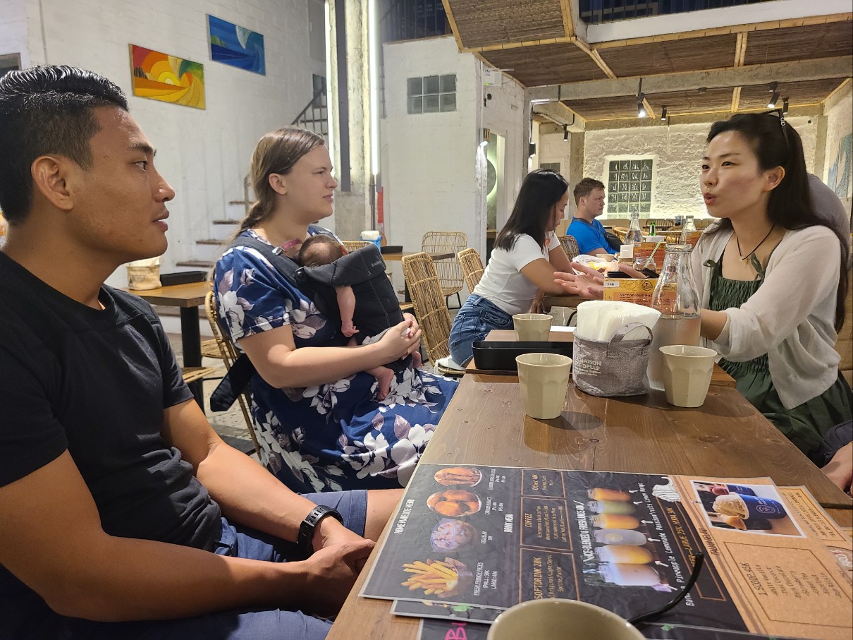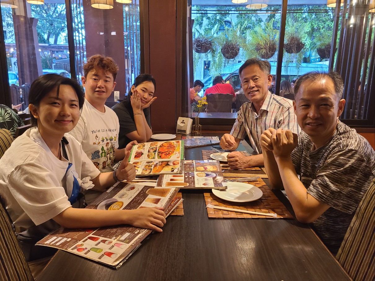기도회를 마치니 박선교사님이 와계셨다. 서로 소개하고 르메르디안 호텔로 갔다. 식사를 하며 사역 설명을 들었다. 박선교사는 동현이 학교 친구의 부친으로 2010년 방콕에서 평신도로서 사역을 시작하시고 2019년 챵라이로 옮겨 탈북자 복음사역을 하셨다. 챵라이에 50 unit의 한인 선교사들이 있다고 하셨고 지금 센터에서 연합사역을 하시고 또 스포츠사역을 위해 기도중이며 좋고 싼 부지가 나와 그것을 확보하시길 기도하시고 있다고했다. 직장생활을 20년 하시고 자비량으로 거의 선교하셨고 최근 목사 안수를 받으셨다. 멋있는 호텔에서 부페를 대접해주셔서 식사후에도 멋있는 강가의 풍경을 배경으로 사진을찍었다. 탈북민 선교의 생생한 사역을 듣고 태국 선교의 전반적인 상황과 앞으로 젊은이들을 통해 돌파구를 열어가기위해 스포츠선교를 특별히 간구하신다. 챵라이 에서는 신학교 사역, 기숙사 사역, 센터사역, 이런 카테고리로 사역이 이루어 지고있고 미안마인 상대로 하는 사역, 중국인 사역, 소수민족 사역등 다양한 사역이 있고 이곳이 중국과 가까워서 할아버지 세대 이전부터 많은 중국인이 넘어와서 이곳에 살며 태국 국적을 가지게되어 중국어 하는 사람이 많다. 최근에도 해외투자나 교회핍박으로 중국인들이 많이 넘어온다고한다. 점심때는 시내로 나가 스피앤과 선교사에게 줄 선물을 사고 선교관으로 돌아와 조금 쉬고 있으니 태국 사역자 리쯔량 (니폰)과 홍콩에서온 위니가 와서 같이 이야기했다. 리쯔량은 부친때 중국에서 태국으로 건너와 미엔마에서도 살았고 모친은 샨족 출신이라했다. 위니는 미안마와 국경에 있는 매사이 에서 어린이 집을 운영하며 산족이나 미안마에서 넘어온 자중에 어려운 집안의 자녀들에게 교육을 시킨다고했다. 만페이 사모가 잡채, 커리, 생선, 된장국등 여러 음식을 준비해서 같이 먹으며 교제했다. 스피엔은 선물도 받고 손님이 많으니 기분이 좋아 왔다 갔다한다. 세아는 그린커리가 맛있다고 내일 시장에 가서 그것을 구입하겠다고하고 홍미자매는 5시반부터 인터넷 수업을 들으러 방에 들어갔다. 오늘 미안마에 관한 많은 이야기를 들었다. 방문자 모두 중국말을 잘하고 서로 정기적으로 교제를 한다고한다. 동남아에 흩어진 화교들은 각 나라에서 독특한 지위를 유지하며 그 민족에 완전 동회되지 않고 중국인의 기질과 특징을 유지하며 거주하는 나라에 잘 적응하며 주요한 세력을 유지하고있다. 이들의 net work는 아주 강력하고 친밀해서 크리스쳔이 된후에는 복음전파에 이 결속력을 바탕으로 기여하는 바가 크다. 우리 한국은 선교사 파송, 교회건축, 단기선교팀, 구제사역으로 단기적, 각개전투식으로 각국에서 활동하지만 화교들은 오랜 역사와 생활 기반을 통해 은근히 장기적으로 생할속에서 복음화, 제자화를 하는 전략을 쓴다.