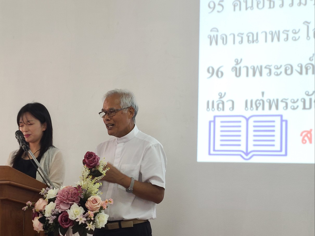 아침 기도회에 홍미자매가 2 Tim 3:15-18 말씀으로 전하면서, 태국사람들이 불교로 인해 모든것을 수용하는 것을 덕으로 인식하고 세상의 모든 것을 진리의 관점이 아닌 똑똑함, 편리함, 중도타협의 관점에서 봄으로 인해 사망으로 빨리 달음박질하고 있음을 지적하고 시간은 그냥 흘러가는것이 아니라 천국이라는 집에 이르기까지 성숙을 위해 존재함을 강조하고, 이 땅의 삶이 거기로 매진할것을 이야기했다.