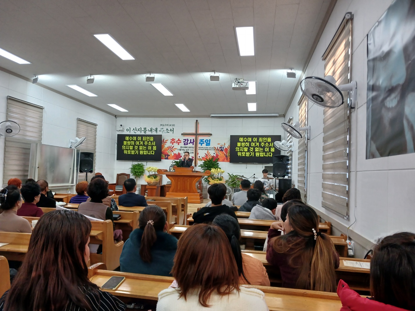 쉴만한 교회에서 아침을 먹고 11시 예배를 드렸다. 예배당을 부산에서 김해로 옮겨 성도님들이 부산에서 오신다. 이지영목사님이 담임하시고 올해 79세임에도 뚜렸한 비젼을 가지고 추진력이 대단하시다. 정말 끈끈한 결속력으로 성도들이 뭉쳐있음을 느낄수있다. 오후예배때는 캄.사모의 특송에 이어 이번 캄.사모 한국방문을 특별하게 인도하신 하나님의 뜻을 두가지로 설명했다. 전도서 11장 1절, 빵을 물에 던질 때가 있고 또 그것을 돌려받을 때가 있음을 설명하고, 예레미야 4:19의 trumpet sound와 alarm of war를 현 세계상황에 비추어 설명했다.