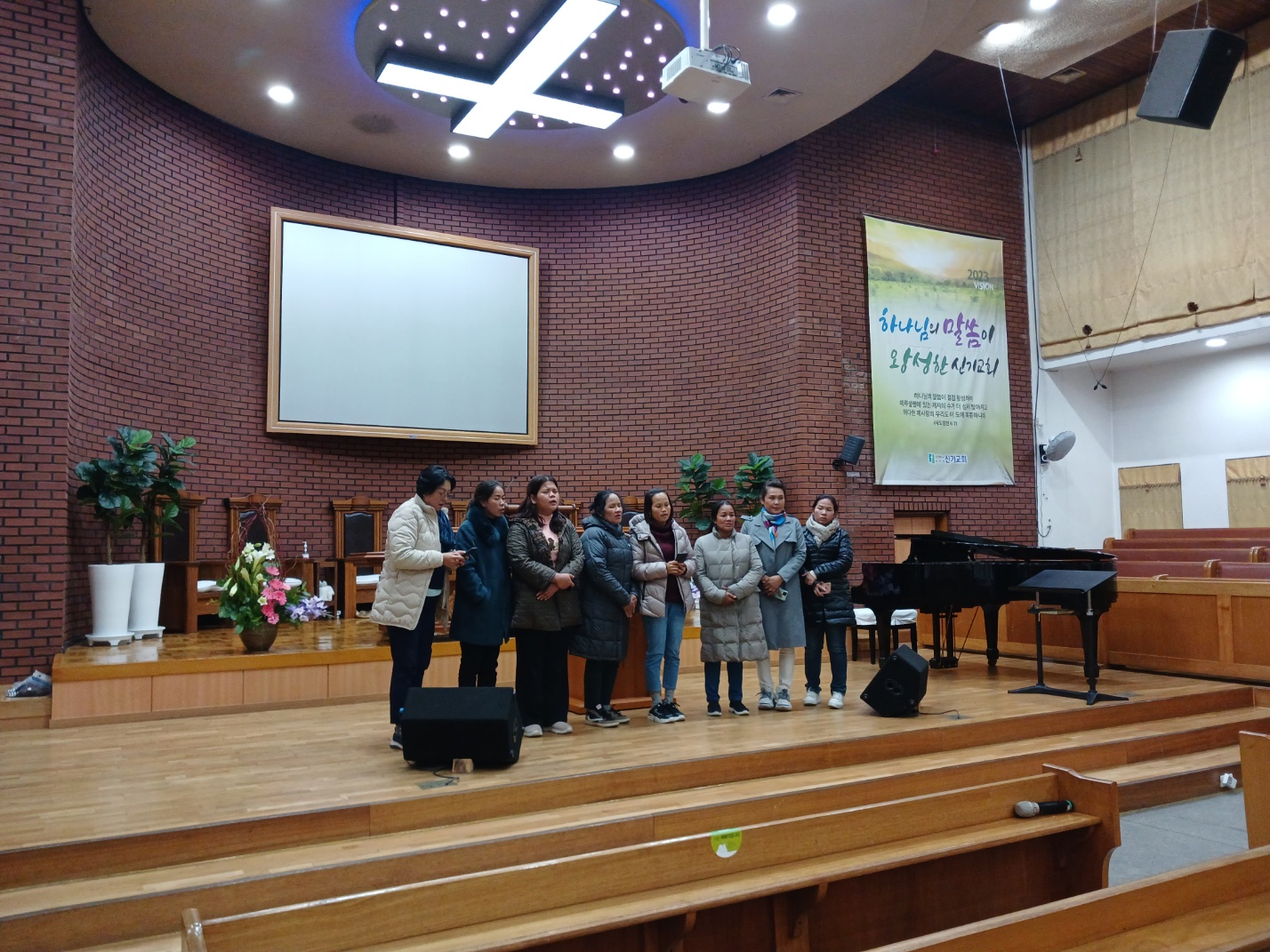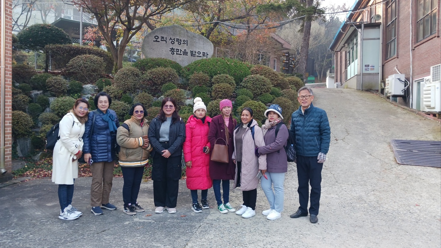 인천에 도착하니 아침 날씨가 3도라 했다. 공항 출국장으로 나오니 소명교회에서 패딩을 가지고 우리를 마중나와있었다. 캄. 사모들이 오면 한국의 추운날씨를 견디기 힘들것이라고 부산의 은주자매가 수영로교회 아기엄마들과 친구의 도움을 받아 가벼운 새 패딩 8개를 사서 서울 소명교회에 미리 보내놓아서 공항으로 가져와 바로 따뜻한 옷을 입게되었다. 소명교회로 가서 전열을 가다듬고 양화진 외국인 선교사 묘지로갔다. 전목사님 사모님이 동행했고 설명에 모두 감명을 받았다. 한알의 밀알이 떨어져 오늘날 한국 교회와 국가에 큰 열매를 가져온 이들의 희생. 1세 미만 영아들의 무덤도 보고, 열악한 환경, 풍토병으로 죽어간 어린 아이들, 또 절두산, 단두대, 목을 치던 큰 칼. 날씨는 추웠지만 정신은 더욱 또렸했다. 홍미자매가 꽃을 가져와 한송이씩 선물했다. 연세대학교로 가서 언더우드 동상에서 정문쪽으로 걸었다. 학교 규모가 커서 어떤 사모는  앙코르왓 같다고 말한다. 저녁은 박병은 원장. 부인. 가족이 우리를 접대해주었다. 이번 사모 방문에도 적극적으로 도와주었다. 소명교회 식구들, 우리 일행 모두 기쁨이 충만했다. 추운 하루였지만 훈훈하고 즐거운 교제였다.