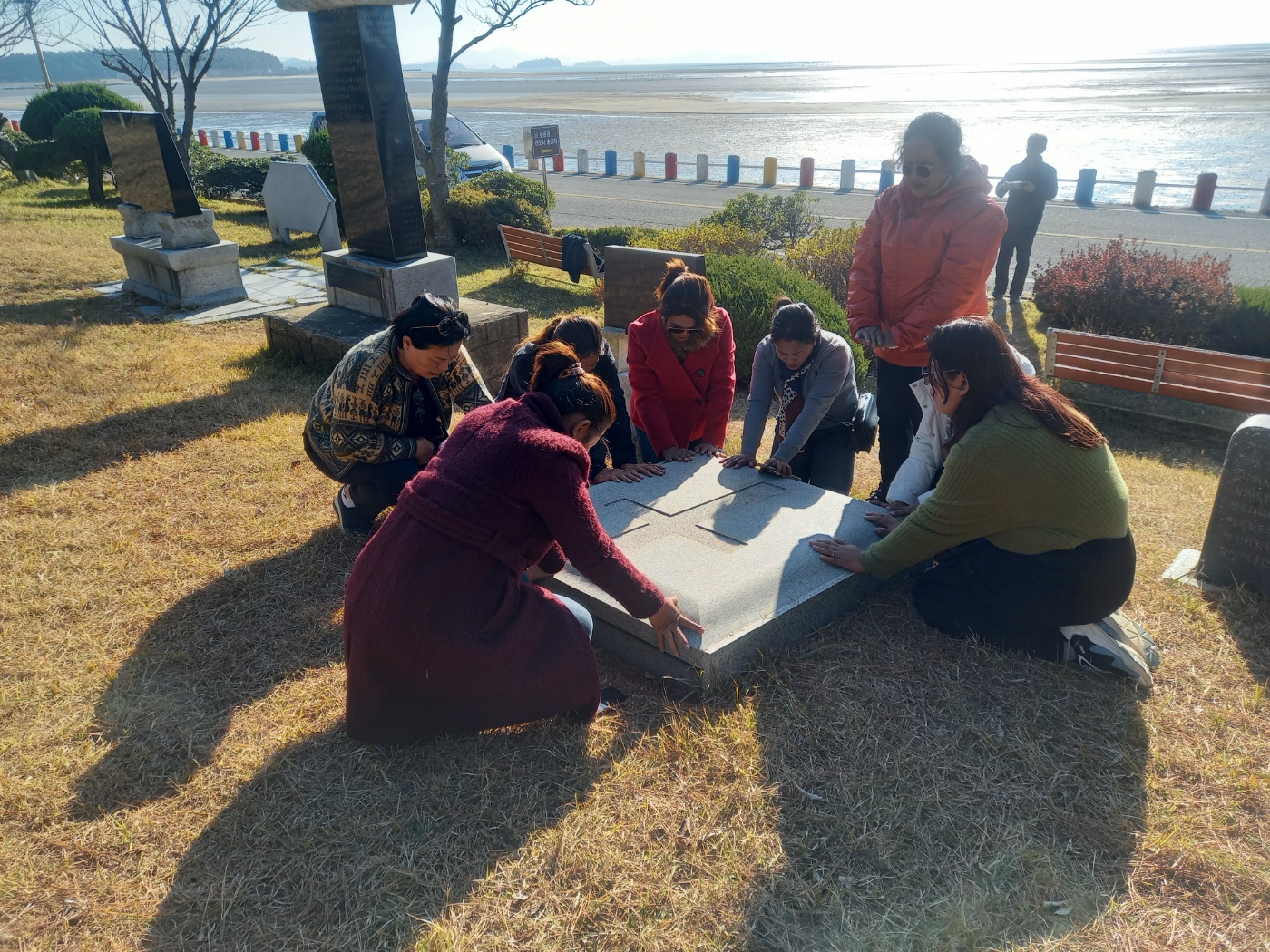 인천에 도착하니 아침 날씨가 3도라 했다. 공항 출국장으로 나오니 소명교회에서 패딩을 가지고 우리를 마중나와있었다. 캄. 사모들이 오면 한국의 추운날씨를 견디기 힘들것이라고 부산의 은주자매가 수영로교회 아기엄마들과 친구의 도움을 받아 가벼운 새 패딩 8개를 사서 서울 소명교회에 미리 보내놓아서 공항으로 가져와 바로 따뜻한 옷을 입게되었다. 소명교회로 가서 전열을 가다듬고 양화진 외국인 선교사 묘지로갔다. 전목사님 사모님이 동행했고 설명에 모두 감명을 받았다. 한알의 밀알이 떨어져 오늘날 한국 교회와 국가에 큰 열매를 가져온 이들의 희생. 1세 미만 영아들의 무덤도 보고, 열악한 환경, 풍토병으로 죽어간 어린 아이들, 또 절두산, 단두대, 목을 치던 큰 칼. 날씨는 추웠지만 정신은 더욱 또렸했다. 홍미자매가 꽃을 가져와 한송이씩 선물했다. 연세대학교로 가서 언더우드 동상에서 정문쪽으로 걸었다. 학교 규모가 커서 어떤 사모는 앙코르왓 같다고 말한다. 저녁은 박병은 원장. 부인. 가족이 우리를 접대해주었다. 이번 사모 방문에도 적극적으로 도와주었다. 소명교회 식구들, 우리 일행 모두 기쁨이 충만했다. 추운 하루였지만 훈훈하고 즐거운 교제였다.
