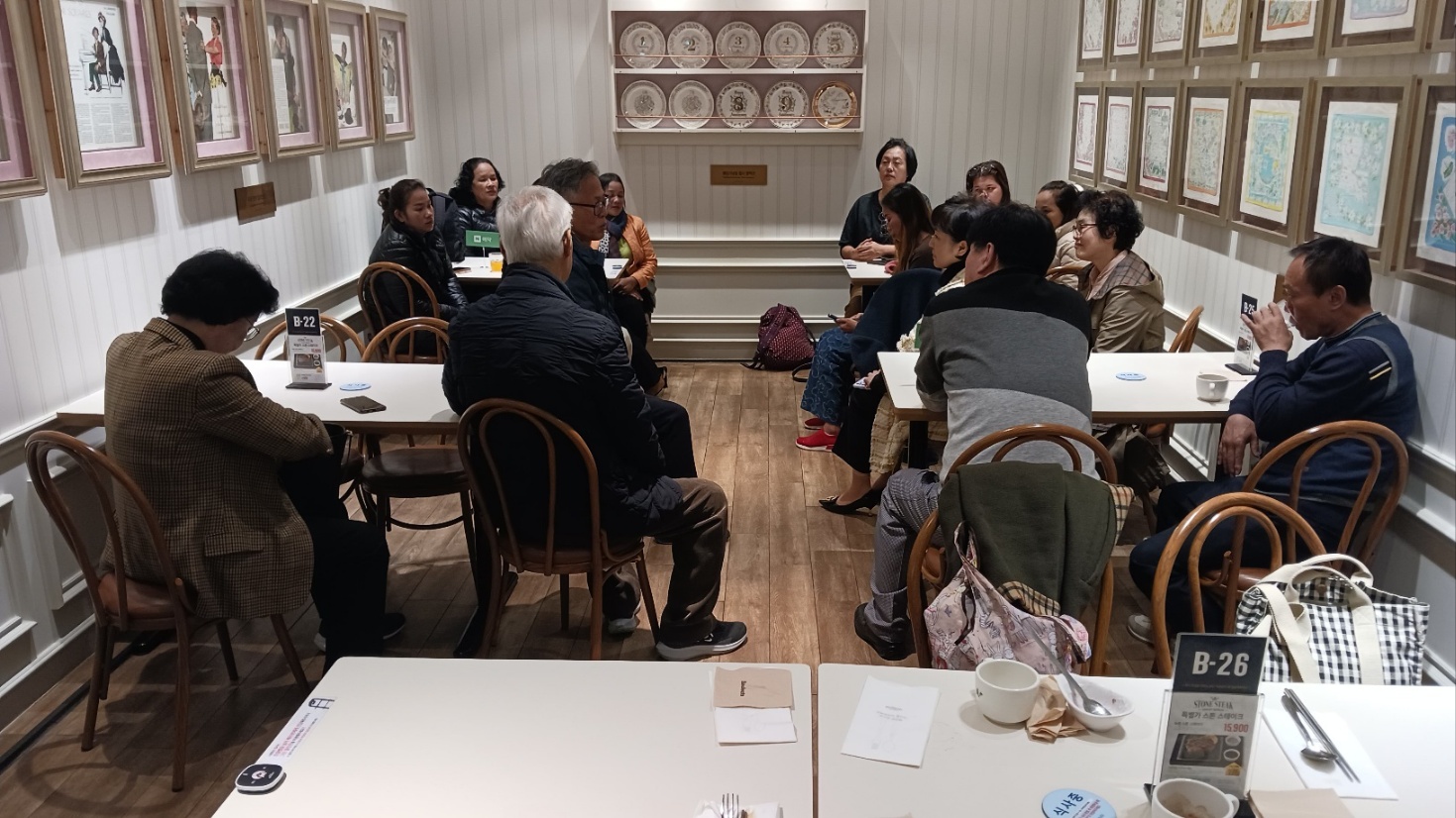 내년 3차 캄.사모 한국방문을 하게된다면 한국 교회 사모님들과 같이 3일정도 세미나를 압해도에서 할까 생각해본다. 한국 사모님들이 한 session씩 맡아 진행하고 인근의 퍼플 섬, 천사대교, 문준경기념관, 갯뻘체험등을 방문하며 교제하면 좋을것같다. 한국 사모님들의 다양한 체험과 간증이 캄.사모들에게 큰 격려와 도움이 되리라 생각한다. 안양에 도착하니 이상범목사님이 또 차를 가져오셔서 우리 짐들을 도봉산 인근의 숙소로 옮겨 주셨다. 이번 여행에서 벌써 몇번의 장거리 운행을 도와주셨고 내일 공항 갈때도 도와주신다. 연세가 70 이신데 우리 많은 짐들을 미리 같다놔 주시니 덕분에 우리의 여행이 편하지만 죄송스럽다. 안양에서 조영길목사님 일행과 식사교제를했다. 조목사님은 지금 82세로, 10여년전 우리 캄퐁솜 시내 선교관에서 한달여간 같이 지내셨다. 백석대학교에서도 오랬동안 가르치셨고 지금은 성경을 전체적인 파노라마 관점에서 목사님들에게 가르치신다. 사모님과 여러목사님이 같이 오셔서 식사를 하며 이야기했다. 10여년전 김인성선교사를 우리에게 소개하셨고 김선교사는 지금 캄퐁츠낭에서 초등학교 사역을하고 중학교 건물도 완공했다.
