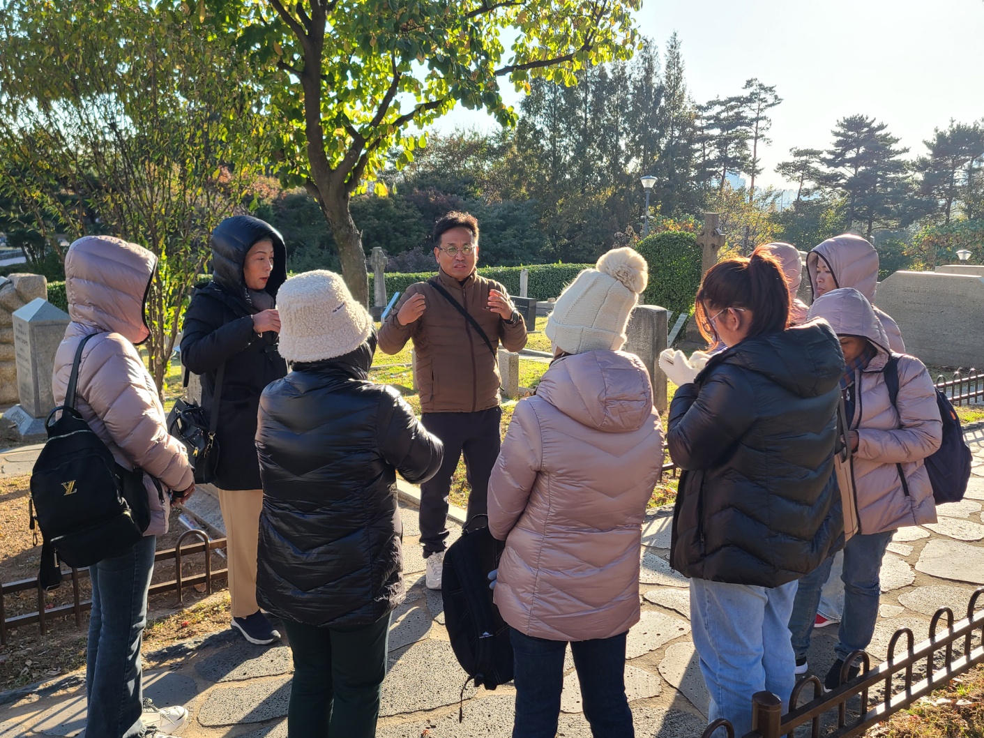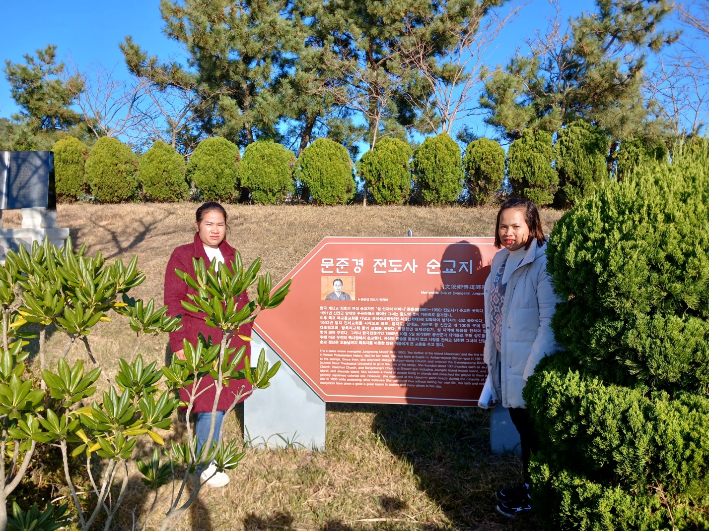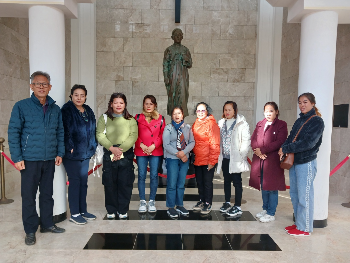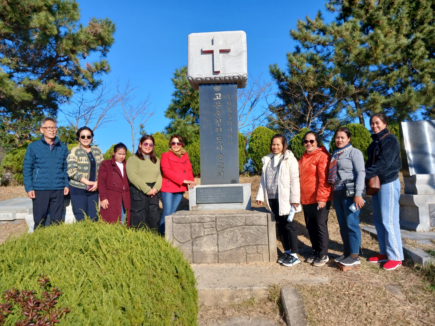 인천에 도착하니 아침 날씨가 3도라 했다. 공항 출국장으로 나오니 소명교회에서 패딩을 가지고 우리를 마중나와있었다. 캄. 사모들이 오면 한국의 추운날씨를 견디기 힘들것이라고 부산의 은주자매가 수영로교회 아기엄마들과 친구의 도움을 받아 가벼운 새 패딩 8개를 사서 서울 소명교회에 미리 보내놓아서 공항으로 가져와 바로 따뜻한 옷을 입게되었다. 소명교회로 가서 전열을 가다듬고 양화진 외국인 선교사 묘지로갔다. 전목사님 사모님이 동행했고 설명에 모두 감명을 받았다. 한알의 밀알이 떨어져 오늘날 한국 교회와 국가에 큰 열매를 가져온 이들의 희생. 1세 미만 영아들의 무덤도 보고, 열악한 환경, 풍토병으로 죽어간 어린 아이들, 또 절두산, 단두대, 목을 치던 큰 칼. 날씨는 추웠지만 정신은 더욱 또렸했다. 홍미자매가 꽃을 가져와 한송이씩 선물했다. 연세대학교로 가서 언더우드 동상에서 정문쪽으로 걸었다. 학교 규모가 커서 어떤 사모는 앙코르왓 같다고 말한다. 저녁은 박병은 원장. 부인. 가족이 우리를 접대해주었다. 이번 사모 방문에도 적극적으로 도와주었다. 소명교회 식구들, 우리 일행 모두 기쁨이 충만했다. 추운 하루였지만 훈훈하고 즐거운 교제였다.