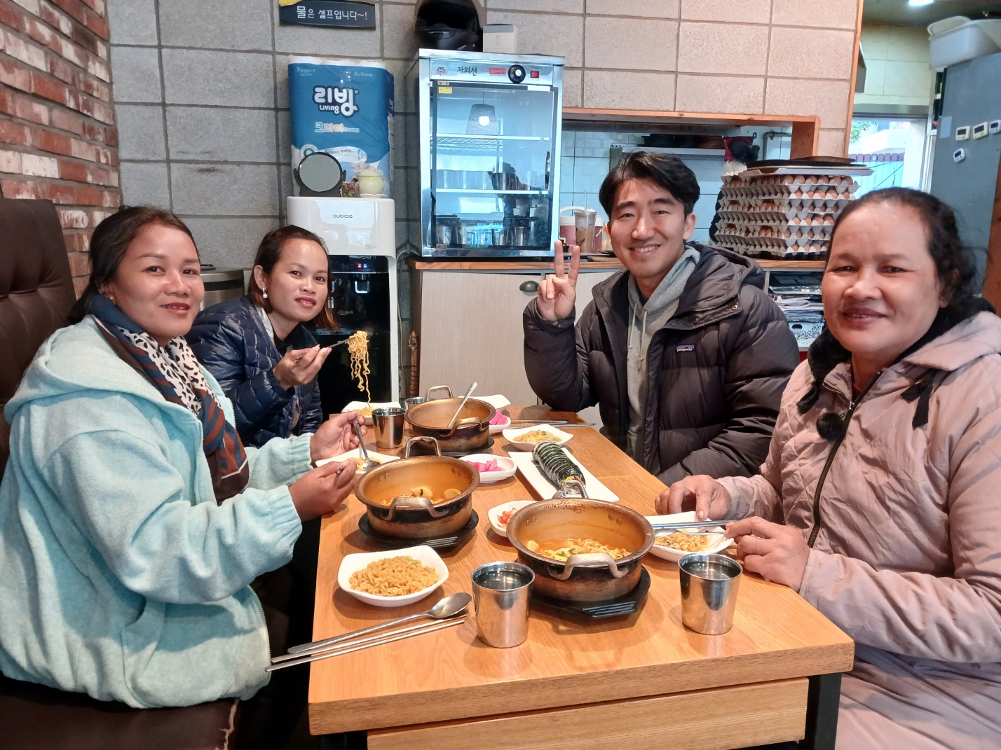 내년 3차 캄.사모 한국방문을 하게된다면 한국 교회 사모님들과 같이 3일정도 세미나를 압해도에서 할까 생각해본다. 한국 사모님들이 한 session씩 맡아 진행하고 인근의 퍼플 섬, 천사대교, 문준경기념관, 갯뻘체험등을 방문하며 교제하면 좋을것같다. 한국 사모님들의 다양한 체험과 간증이 캄.사모들에게 큰 격려와 도움이 되리라 생각한다. 안양에 도착하니 이상범목사님이 또 차를 가져오셔서 우리 짐들을 도봉산 인근의 숙소로 옮겨 주셨다. 이번 여행에서 벌써 몇번의 장거리 운행을 도와주셨고 내일 공항 갈때도 도와주신다. 연세가 70 이신데 우리 많은 짐들을 미리 같다놔 주시니 덕분에 우리의 여행이 편하지만 죄송스럽다. 안양에서 조영길목사님 일행과 식사교제를했다. 조목사님은 지금 82세로, 10여년전 우리 캄퐁솜 시내 선교관에서 한달여간 같이 지내셨다. 백석대학교에서도 오랬동안 가르치셨고 지금은 성경을 전체적인 파노라마 관점에서 목사님들에게 가르치신다. 사모님과 여러목사님이 같이 오셔서 식사를 하며 이야기했다. 10여년전 김인성선교사를 우리에게 소개하셨고 김선교사는 지금 캄퐁츠낭에서 초등학교 사역을하고 중학교 건물도 완공했다.