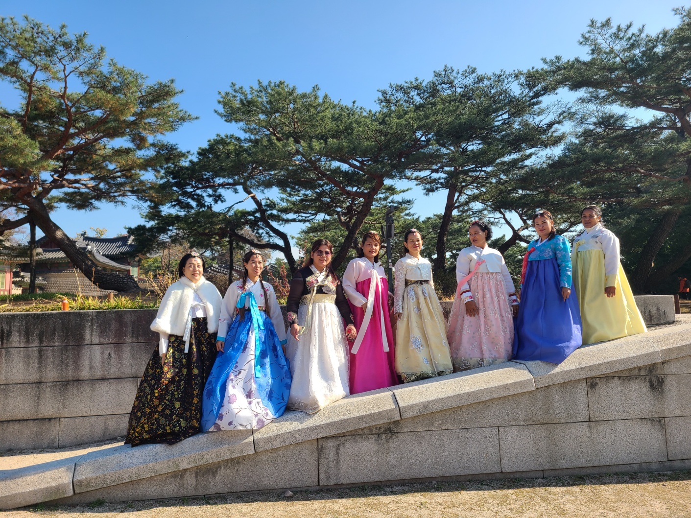 아침 일찍 이상범 목사님이 광명에서 차를 가지고 오셔서 우리 큰 짐을 싣고 오산 광은 기도원에 갔다 놓으셔서 우리는 송간사님과 단촐하게 창경궁으로 향했다. 한복집에서 전영주.김한나 자매도 만났다. 총신 유아교육과에 재학중 kbs에 선교를 많이 담당했었는데 이제 40대 중년이 되어 만났다. 날씨가 풀려 얇은 한복에도 모두들 기분좋게 고궁을 마음껏 즐기며 홍미 자매의 코치로 다양한 포즈로 사진촬영을 했다. 그들 일생에 가장 즐거운 날인듯 마음껏 고궁을 날아다녔다. 이 사모 부대가 가는곳 마다 모든 방문객의 시선을 사로잡았다. 서울역으로 가서 햄버거를 먹고 기차를 타고 조치원에 가서 전웅환장로님. 임길빈 권사님. 김현 강도사님, 임지훈 목사. 홍민 자매를 만나고 좋은 옷 한보따리씩 받았다. 가방 공간은 한정되어 있고 짐은 늘어나고 벌써부터 신경이쓰인다. 임목사 차로 오산 기도원에 저녁늦게 도착하니 이상범 목사님이 기다리고 있다가 방을 안내해 주시고 다시 돌아가셨다. 우리의 여행을 편하게 해주시려 연세가 많으신데도 수고를 아끼지 않으신다. 씻고 핸드폰을 켜니 화면이 뜨지않는다. 드디어 고장이다. 또 어찌 되겠지.