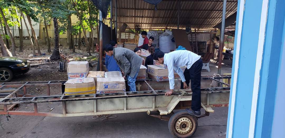 선물 3200개를 프놈펜에서 뜨봉크몸 미역 사역자에게 보내고 다시 CC3로 긴 오토바이 툭툭으로 옮김.