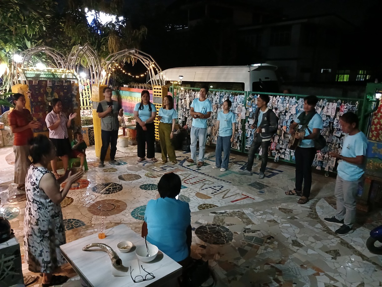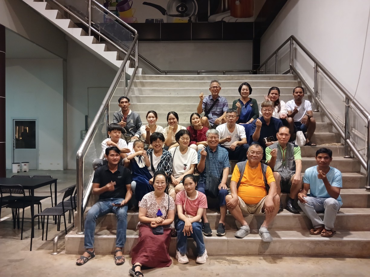 역에 도착하니 이호택선교사님이 마중나오셨고 아침을 먹고 A팀, B팀으로 나누고 우리는 창마이 Chinese Church로 가서 김재환선교사님과 미얀마인 양은징 전도사님, 대만에서 오신 장로님, 집사님등 교우와 교제했다. 주로 중국에서 온 유학생들과 그의 부모님들과 중국에서 피해 나온 사람들이 잠시 이곳에 머물다 캐나다, 미국, 구라파쪽으로 이주한다고한다. 대만교회에서 후원하고 김목사님은 초청을 받아 이곳에서 목회하시는데 최근 대만교회에서 오신 장로님들과 갈등이 있었고 이제는 마무리되어 간다고했다. 우리 kbs 에서 만든 One Lord, One Faith 라고 새긴 목판을 선물로 기증하니, 이 목판에 세긴 메시지가 본 교회를 향한 주님의 뜻으로 알고 고마워했다. 미역사역자와 뽀아임 사역자가 캄보디아 교도소 사역 간증을했고 캄.찬양도 2곡 불렀다. 중국에서 온 여 신도도 최근의 중국 교회 핍박 상황을 간증했다. 헌금하는것도 아무런 영수증없이 주고 받으니 불법 금융거래라고 교회 지도자를 1년넘게 혐의도 없이 감금하고 있다고한다. 그리고 어떤 장로님은 세관에 근무하시다 조금 뇌물을 받았다고 감옥에 갇혔는데 그곳에서 복음을 받고 처가집, 본가 모두 예수님을 믿게되었다고 간증했다. 교제후 식사대접을 잘 받고 선교센터를 방문해서 김목사님 건강을위해 기도하고 명월초 가루도 5봉지 드렸다.