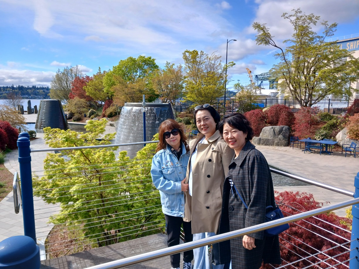 차를 타고 배안으로 들어가 거기다 세워놓고 2층 여객 좌석에 앉아 바다를 보며 30분 정도 이야기하니 그 큰 페리가 서서히 시애틀 도시로 향하고 바다에서 도시의 다양한 모양의 빌딩과 스카이라인을 보며 진입하자 사람들은 그 도시를 배경으로 사진들을 찍었다. 내려서 대만음식점 체인점에서 식사하고, 붕어빵같은 조그마한 풀빵도 사먹고, 시내구경, 바다구경, 멀리보이는 큰 설산, 큰 Star Box 커피점, 그리고 그 처음 시작한 커피점, University of Washington 의 교정, 도서관, 해변가 public market center, 꽃집, 껌벽, 언덕위 주택가, 폭포까지 둘러보고, 타코마 중앙장로교회를 지나, 타코마의 청기와에서 저녁을했다. 알뜰하고 꼼꼼하게 시애틀을 둘러볼수있었다. 주안에 있는 형제.자매의 사랑을 듬뿍받았다. 날씨는 화창하고 기온은 그렇게 춥지는 않았고 볼만한 곳은 거의 보았다.