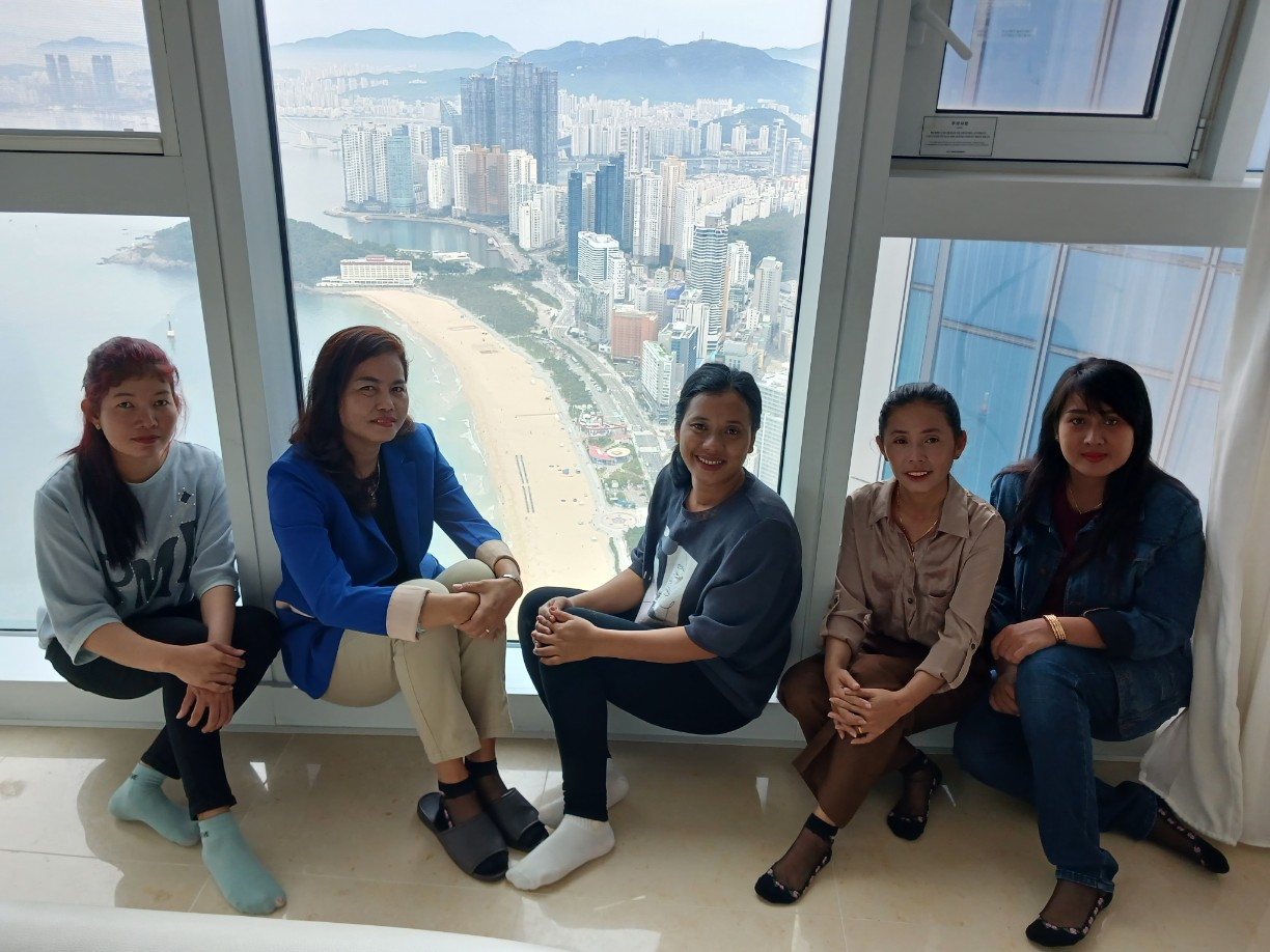 이 초고층 시원하고 고급위 맨션에서 해운대 비치에 몸을 담그고 수영하거나 걸어다니는 사람을 보면 그야말로 조그만해서 그져 움직임만 관찰되고 사람인지 아닌지도  분간이 힘들다. 육지에서 보면 큰사람, 잘난 사람, 부유한 사람, 학식있는 사람, 구분이 가지만, 높은 하늘에서 보면 사람인지 동물인지 잘 모른다. 그저 하나의 어슴프레한 물체일 뿐이다. 하늘의 차원과 땅의 차원은 비교 불가이고, 그 존귀함도 천양지차 이고, 이것이 하늘과 땅의 차이이다. 어렵고 고생을 많이한 캄보디아 사모들도 삼일간 부한 곳에 처할수 있어서 감사하다. 천국을 이해하는데 많은 도움이된다.