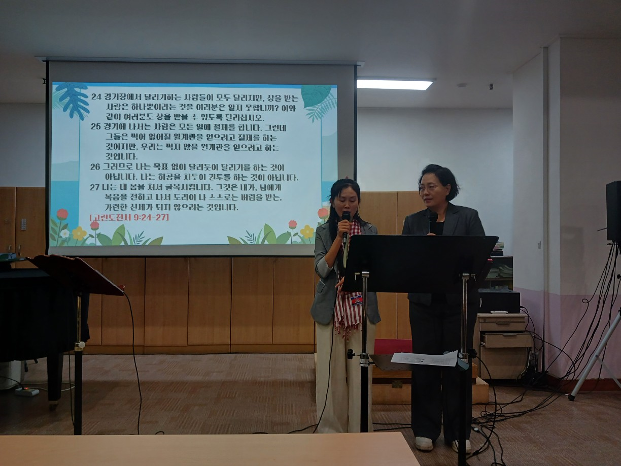 그냥 걷는것처럼 예수 믿지말고 전력을 다해 질주하는 신앙생활, 이 경주를위해 철저한 영적관리 (말씀읽기, 기도)를 하자고 권면했읍니다.