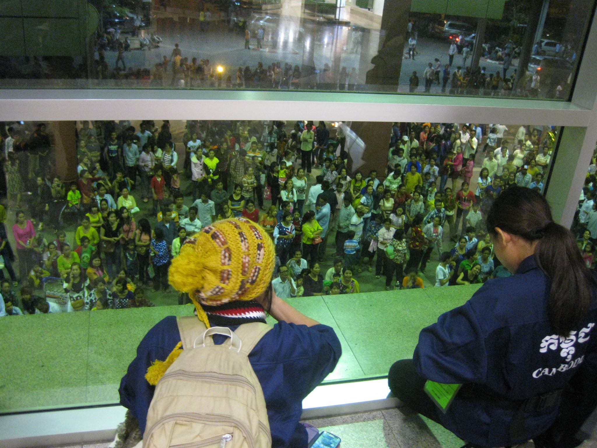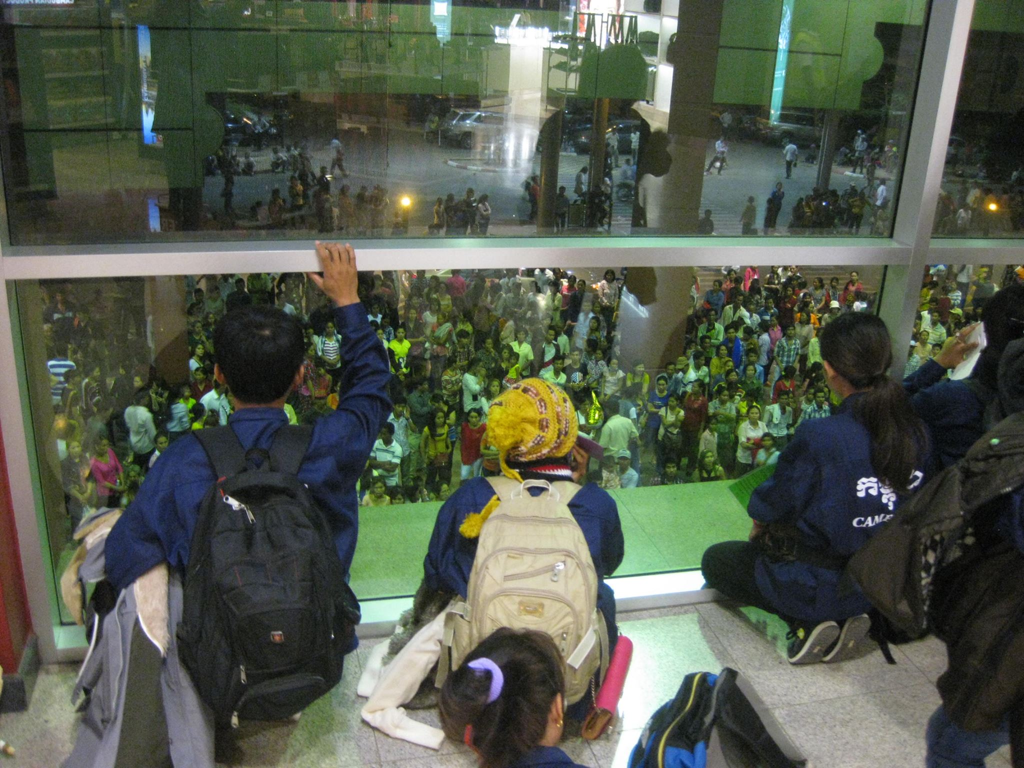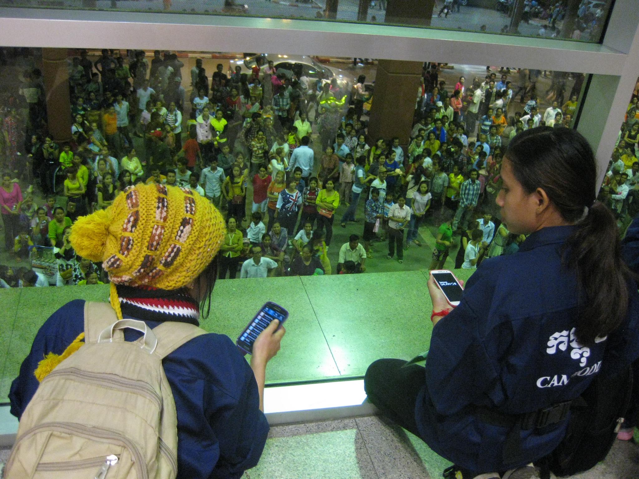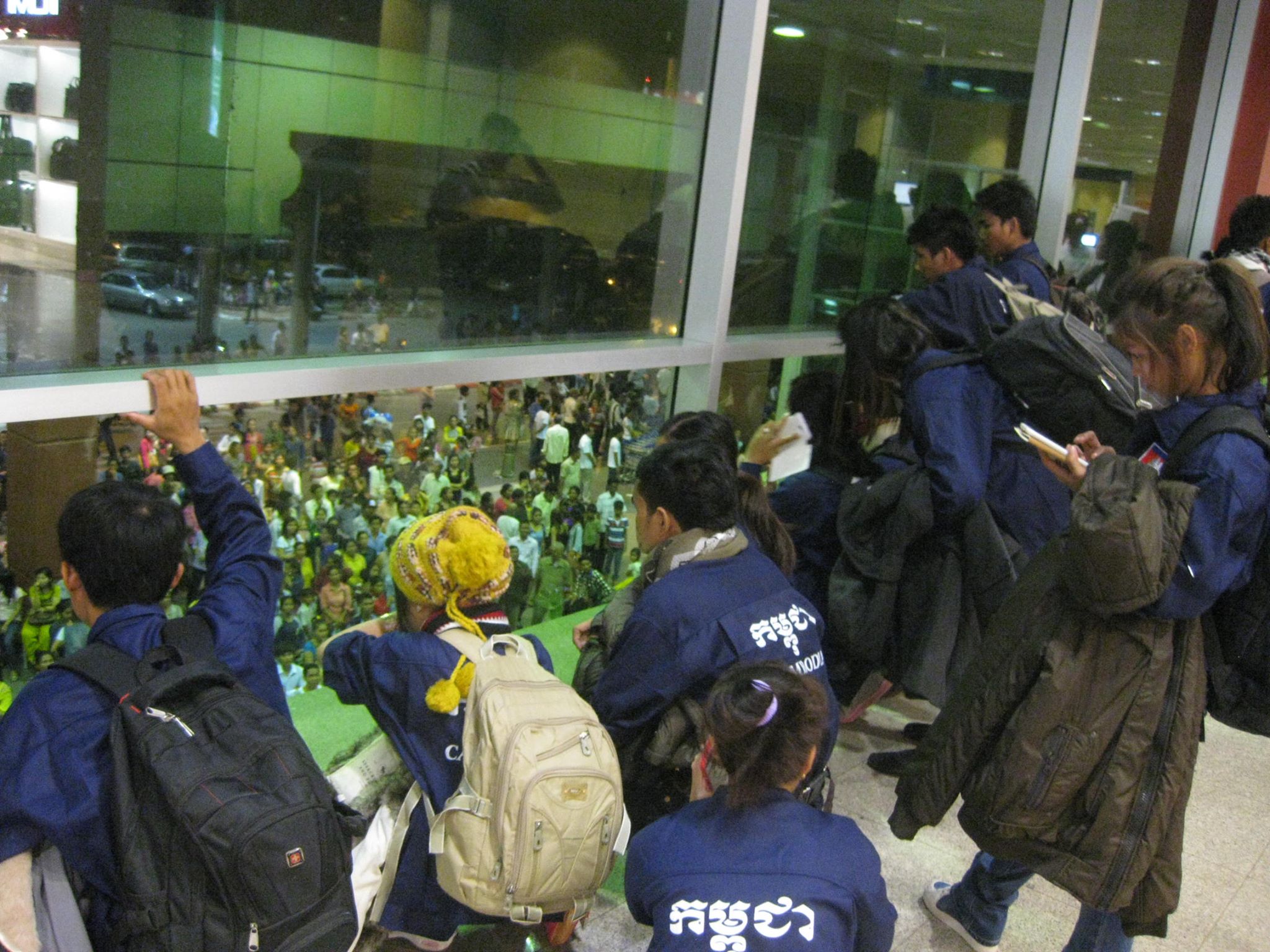 3월 30일 시하누크빌에서 프놈펜공항으로 가서 체크인을 하고 공항 면세점에 들어가니 많은 캄보디아 사람들이 취업을 하여 한국을 가려고 비행기를 기다리는 동안 이제 마지막으로 마중나온 부모 친지와 핸드폰으로 전화를 한다. 유리창을 보면서 우는 사람도 있고 표정들이 다 심각하다. 이제 가면 몇 년 있어야 만나게 되니 모두들 핸드폰을 하면서 또 유리창을 통하여 보이는 그 사랑하는 사람들의 얼굴들을 눈물을 글썽이며 쳐다보면서 하염없이 통화를 하고 있다. 그 장면들이 너무나 보기 애처로워 사진을 찍어두었다. 나중에 세월호사건이 나고 이 사진을 보고 나는 너무 깜짝 놀랐다. 공항 밖에서 그 많은 사람들이 지척지간이지만 들어가 볼 수 없는, 타국처럼 간주되는, 그 면세점에 있는 아이들을 유리창을 통해서만 얼굴을 희미하게 보고 손을 흔들며, 사랑한다고 말해주어도, 몸조심하고 잘 지내라고 고함을 질러도, 그 공항 유리창은 목소리를 하나도 안으로 들여보내지 않는다. 이 장면이 나중에... .