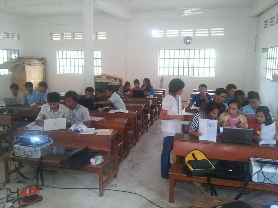 그들이 알아듣든지 못 알아듣든지 계속 영어로 성경을 한장씩 읽고 어려운 부분은 설명하고 해서 3장 정도 공부하고 다음날엔 꼭 시험을쳤다 (True or False, 25문제정도). 캄보디아성경이 있으니 뜻은 알수있으니 시험을 칠려면 두 성경을 같이 읽어야했다. 신입생들은 한 일년 정도는 문제에 대해 감을 잡지 못하다가 2년 정도하면 성적이 오르고 3년 지나면 성경 한권을 다 배우고 테스트를 다 치르게되고 3년과정이지만 4년이되면 졸업하고 영어성경을 이해하고 통역도 가능하게된다. 학력이 낮은데 비해 빨리 영어를 습득하는 이유가 불어라는 영어와 비슷한 단어에 익숙해있고, 문장구조가 영어와 거의같고, 틀려도 부끄러워하지 않고 계속 말하는데 있었다. 다음날 테스트를 받기위해서는 캄.성경, 영어성경을 매일 3장씩 읽어야했다. 나도 매일 트루.폴스문제를 이.삼십개씩 만들어나갔다.