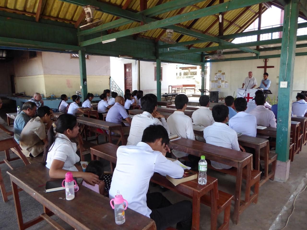 그러다보니 외국인이 영어로 성경을 가르친다하니 젊은이들에겐 큰 기회였다. 비록 내전 중 이었지만 이제 영어를 배워야 모토돕 운전자도 외국인을 태울 수 있고 시장에서도 물건을 잘 팔수있으니 부모들도 적극 가서 배우라고 권장했다. 신학생은 7명이었지만 집사람이 하는 영어반은 이 삼십명이됐다. 신학생들은 거의 성경을 처음대해봤고 영어수준은 간단한 단어를 읽을줄아는 수준이었다. 나는 원래 중국에 가기위해 3년동안 영어로 신학하면서 중국어를 왠만큼할 수준으로 두뇌에 저장해놓았는데 새로운 크메르를 또 공부하는 것이 힘들었다. 나이도 젊지않고 두뇌도 한계가있었다. 그리고 발음을 하면 틀렸다고 하고 10번 발음해도 다 틀렸다고해서 한 일년 노력하다 포기하고 영어로 신학생들을 가르치기로 마음을 정했다.