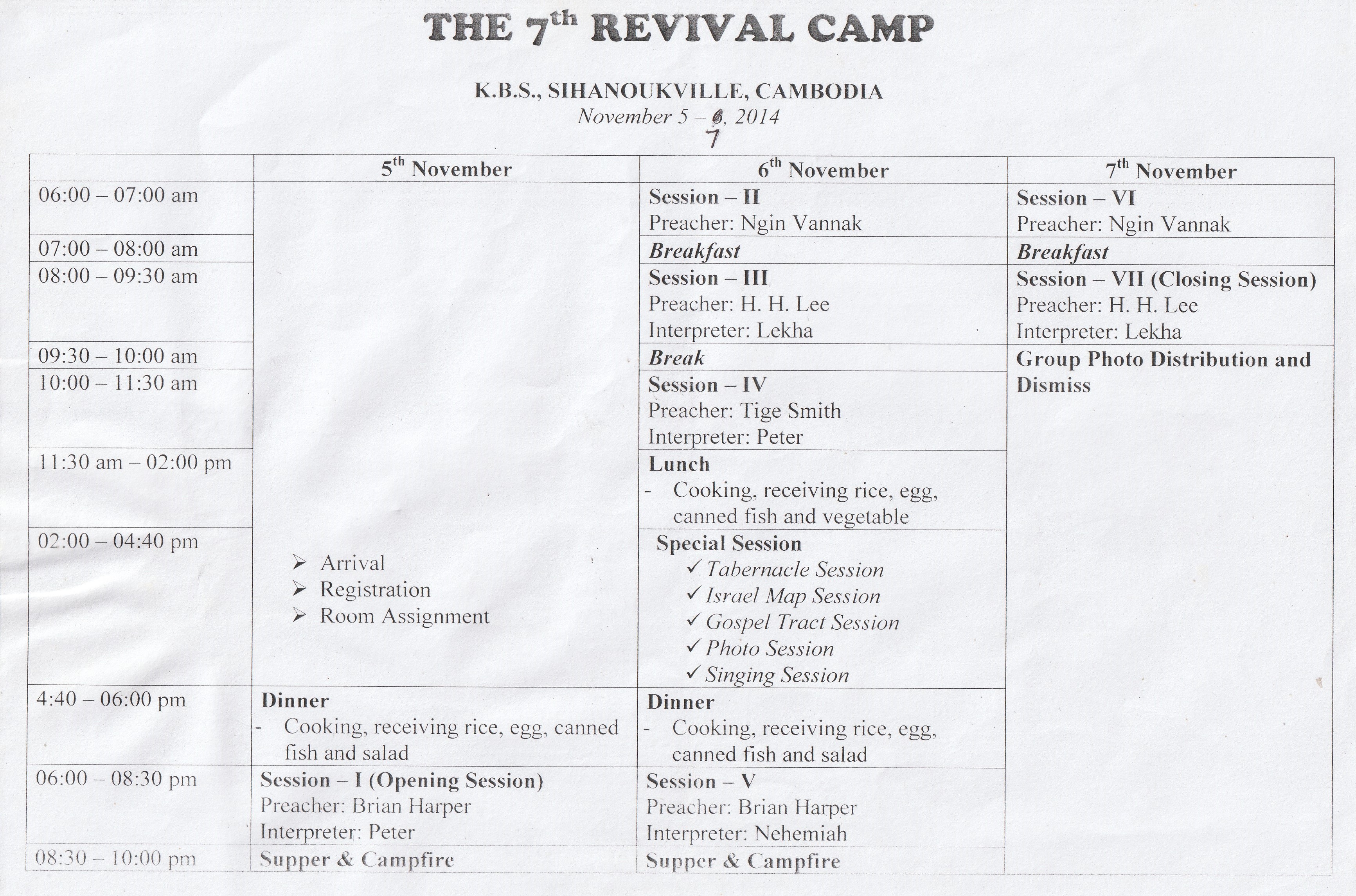 7th Revival Camp (2014), 제 7회 캄보디아 영성 부흥 성회