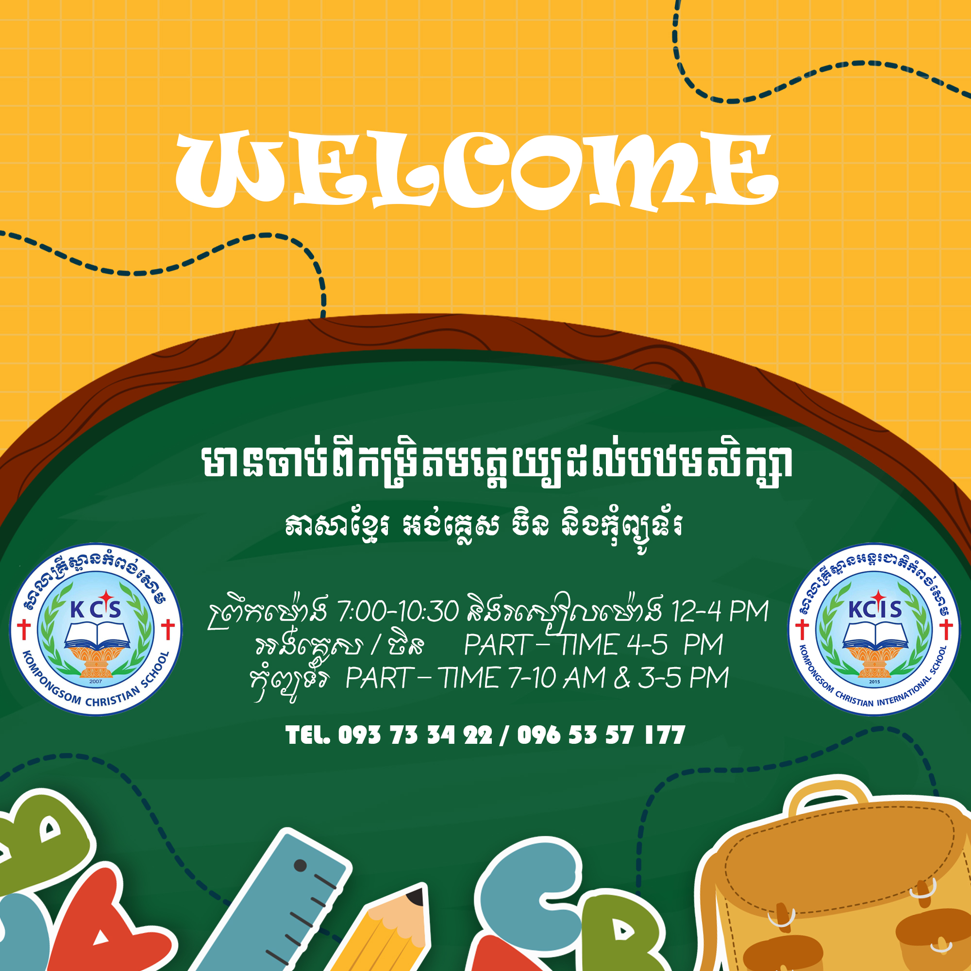 Kompongsom Christian School (KCS) is a school that provides general knowledge to