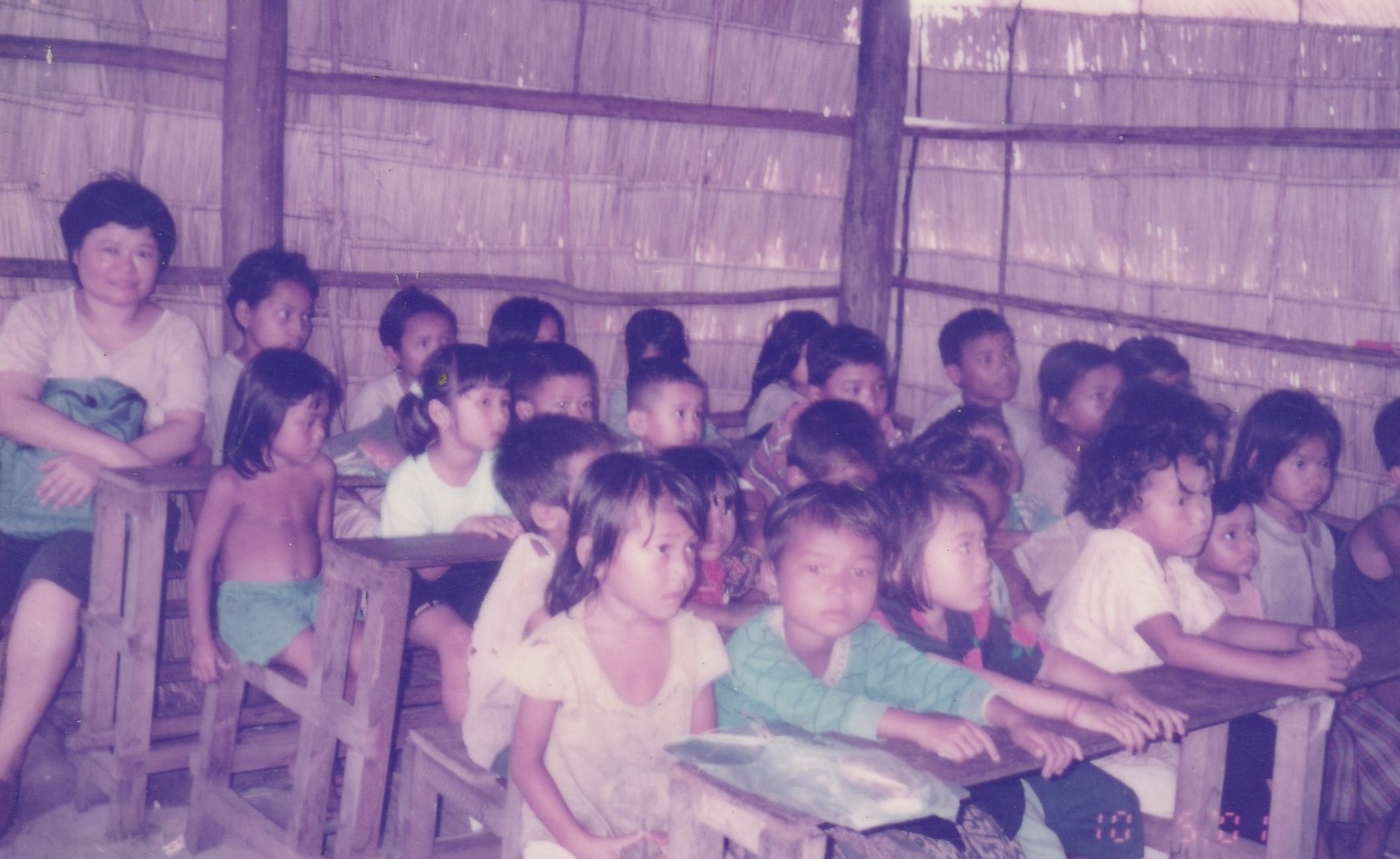 자신들의 땅도 없고 무작정 이 도시로 이사와서 여기에서 나무를 베어 초가로 임시 거처를 만들어놓고 새우나 물고기 잡아먹으며 하루하루 살아가는 도시의 최 빈민들이었다. 두세평 좁은공간에 나무평상 하나 모기장 하나. 냄비 한 두개 담요 한두장 이것이 그들의 살림살이 전부였다. 이 마을을 보고나니 아이들만이라도 가르쳐야겠다고 생각됐다. 그래서 우리학생 한 두명을 일주일에 서 너번 그곳에보내 가르쳤다. 우리도 네 다섯평쯤되는 임시 초가교실을 만들고 모래바닦에 책상 대 여섯개를 갇다놓고 조그마한 칠판붙여서 아이들을 가르쳤다. 한 이십명 이상이와서 배웠다.