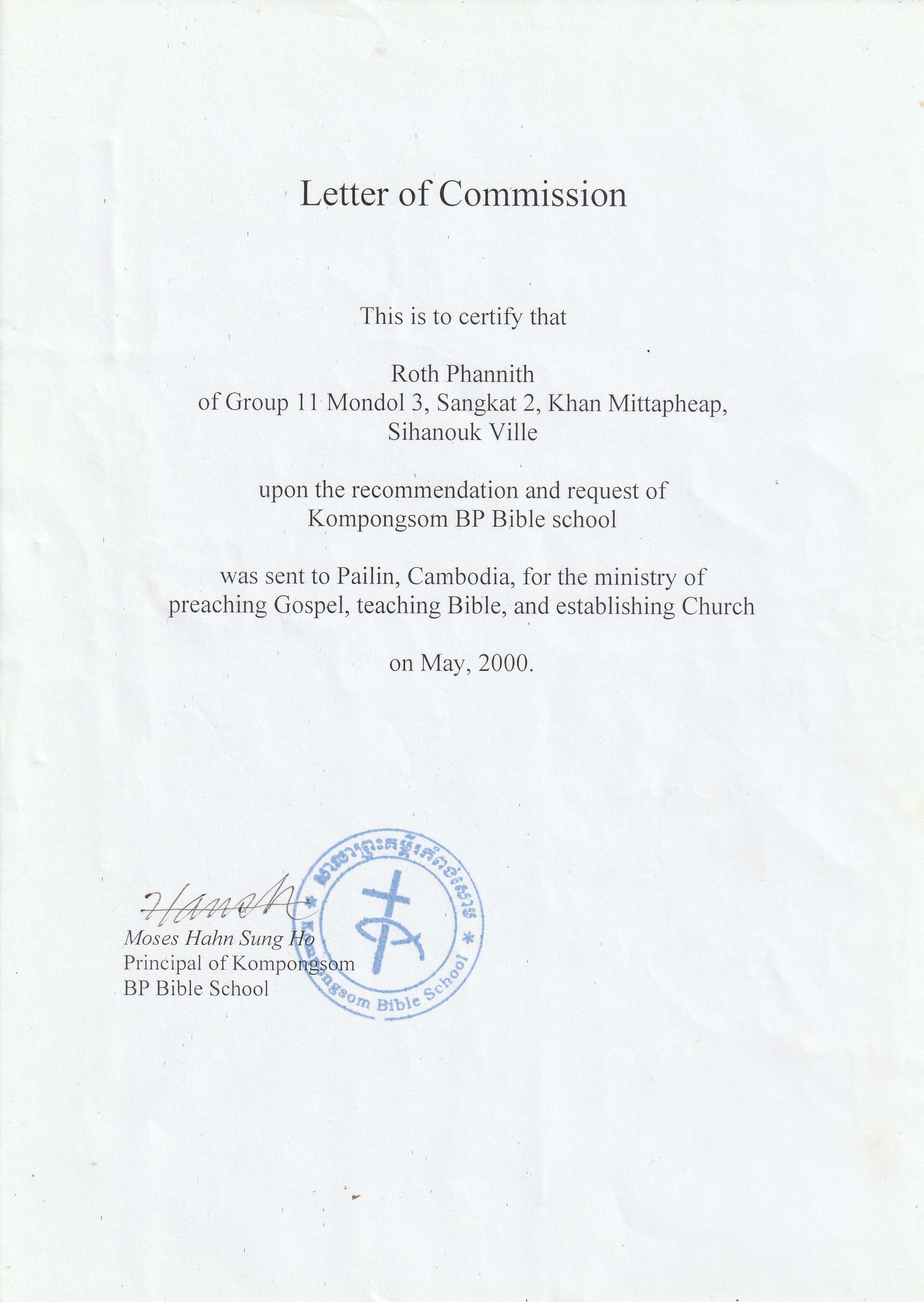 So I had to travel to Pailin once a month to help them and to provide their needs. It took 18 hours by car from Sihanoukville to Pailin. Road was so terribly broken. Our ministers endured all the hardships in Pailin. I also supported them as I can. Evil people tried to break church many times but our Lord kept it for his name's sake. In year 2001 two students graduated, Nehemiah and Bopha. We sent Nehemiah to KohKonh. So he rented a room and started ministry and built a church at downtown in 2002 with the offering of elder(Dr) Jeon DaeWoo. In year 2002 five students graduated, Borya, Jesse, Silas, Chhay, John Kim. They went to the mission field one by one, to Prenop of Sihanoukville,  even to Stung Treng and Kratie. Also I must find the sponsors for them. They were still young and had no experience of ministry before. All their neighborhood were non-believers. So they struggled in the beginning.