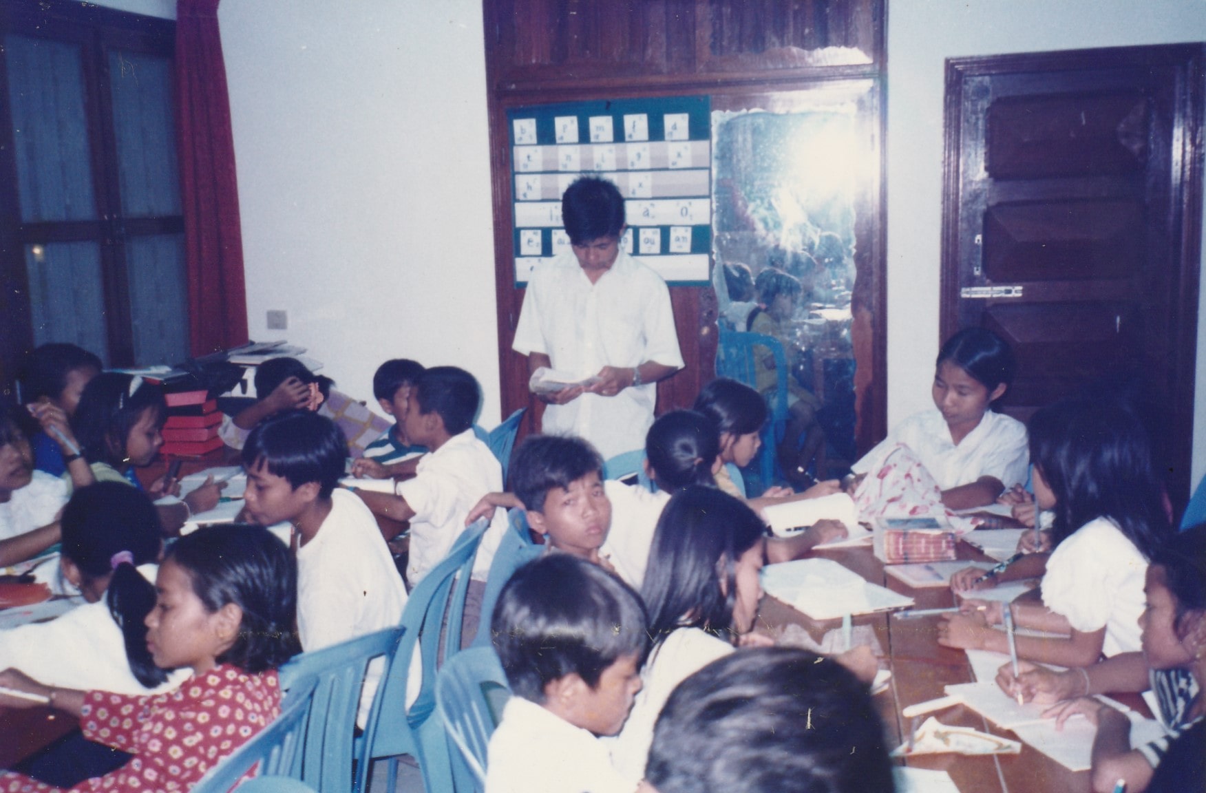 Some foreign teachers, Dr. Chan, deacon Limpin & Charlene, elder Leong, pastor Jonar, joined in teaching students. Some mission teams visited us. We also visited Baikkrong village by boat oftentimes. That was very neglected village, carrying drinking water by boat. We saw young lady was rowing boat for two hours to bring water and going back two hours. Some died from typhoid because of no money of 20 dollars. Brother Yam's family in Baikkrong village were Christians. So we worked together with them. Not only sharing Gospel, but also building classroom for the village, making wooden bridge. We also offered our land to the public school.