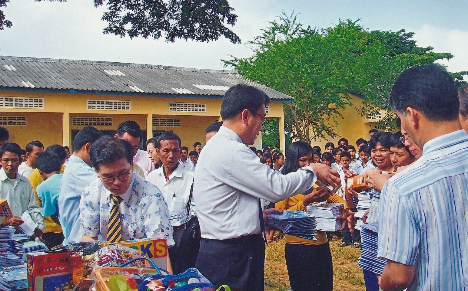 Now all the students moved to the newly built dormitory at the O 5 Hill. We could reach at the school along the small road. There was no electricity, no city water, no shop, and no house nearby. There were many bamboo trees and many snakes. We used generator and provided electricity only from 5pm to 11pm and dug many wells and put many water jars under the roofs. We should fight against these harsh environments, even cobras, and gangsters. There were many rocks under which snakes were hiding. So we drilled holes into the rocks, put explosives, and exploded them. Over than 100 explosions were at bible school hill. In that way we cleared all the suspicious rocks. We also broke the small rocks with hammers and chisel and used that stones for making road and buildings. 65 students were accomodated in the dormitory. Several visiting lecturers taught students, Dr. Chan SingChay, Rev. George, Rev. Stone, Rev. Ki. Some mission teams also visited, Deacon Hwangbo, Hope bp church, Grace bp church, Dr. HB Jung, Life bp church, ChongShin Univ., HongKong Alliance church, Jechon Glory church. Five students, Jesse, Borya, John Kim, Silas, Chhay, graduated in 2002. Jesse and Naomi married, served Smackdeng church, Borya and SreyPov served at Rattanakiri, John Kim to StungTreng, Chhay to Kompongcham; later to Kratie. David and Sarah married. Paul Sokha and Lee Nam Soon married and went to Battambang for serving the Lord. KohKong HanMaEum church was built, and Ottvao school in Pailin started kindergartenin, P1. P2. P3 in 2002. Gospel track, The Way to Heaven, 60,000 copies, were printed in Khmer and distributed. TomrokProlok church was closed down because it located with port extension zone. Children Camp was held with 129 children. Sister Kim Hanna from Chongshin Univ., replacing sister Choi SunHwa, served as kindergarten supervisor. In Dec. 22, 2002, with HK mission team there was Christmas in KBS, 1300 people gathered, 67 people were baptized, also had Christmas in PP prison, also Christmas at Ottavao school in Pailin, 400 gathered, 34 baptized, and visited Battambang with the team, helped Paul Sokha and NamSoon on Christmas service. The team and Dr. Chan took the boat from Kompongsom, visited KohKong on Dec. 28th, and had Gospel rally at Khmer Rouge village, on 29th had Christmas at KK HanMaEum church, Nehemiah pastoring. Dr. Chan had visited Cambodia 15 times from 1998 to 2002. Three times a year she came and taught KBS students one book of New Testament on her each visit. She was retired SNU professor and studied Diploma at SBC and became missionary to China and Cambodia. She came to KBS every year up to 2019. When she came first to Cambodia in 1998, she was 64 years old.