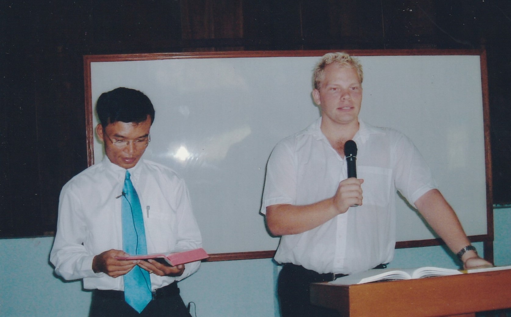 지난달 7월에는 Dr.Chan 칠순잔치를 성경학교 학생들과 같이 가졌습니다. Dr.Chan 께서는 싱가폴 국립대학(Singapore National University)에서 30 년 간 재임하시고 퇴임하셔서는 신학을 하시고 이곳 캄퐁솜에서 지난 7년간 20 회를 방문 하시고 매 방문때마다 한달씩 성경을 가르치셨습니다. 그리고 7월중에 호주 Perth 에서 목회하시는 Rev.Stone 씨와 사모님 , 교인들이 오셔서 창세기와 영어, 사모학을 강의하셨습니다. Rev.Stone 씨는 싱가폴에서 저희와 같이 공부했고 저희 가족과 가깝게 지냈습니다.