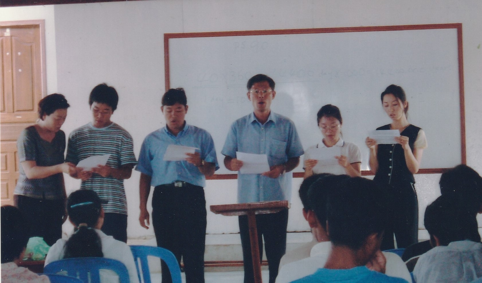 It was held 7th Children and Youth Camp at KBS in Aug 10th to 13th, 2004. From 15 churches, from Pailin, Battambang, StungTreng, KohKong, SraeAmbal, Kratie, Kompongsom, 150 people gathered and had 4 days camp. Sisters from HongKong, sister Lim Sumi, Rev. & Mrs Choi and bible students helped the Camp. Rev. Tan EngBoo from Singapore taught bible students and pastors for a week. We had 70th birthday dinner of Dr. Chan SingChay at kbs. She taught at SNU for 30 years and retired, and came to KBS 20 times for last 7 years. She stayed a month on every visit and taught one book of New Testament on every visit. Mission team of Seoul Seo church made mission trip to KBS with 18 members. Brother Samnang and sister Shulamy married in June, 2004. Now graduate bible students are serving at many places, Nehemiah in KK, Amos in Bakrong KK, John Kim in StungTreng, Chay in Kratie, Stephan at Oknhaheng, Silas at Chengko, Issachar at Botsemoan, Joshua at Vealthom, Jesse at Smackdeng, Phannith in Pailin, and Sreymom at SraeAmbal. Sister Chorby and Sokret went to Korea for learning music for 3 months.
