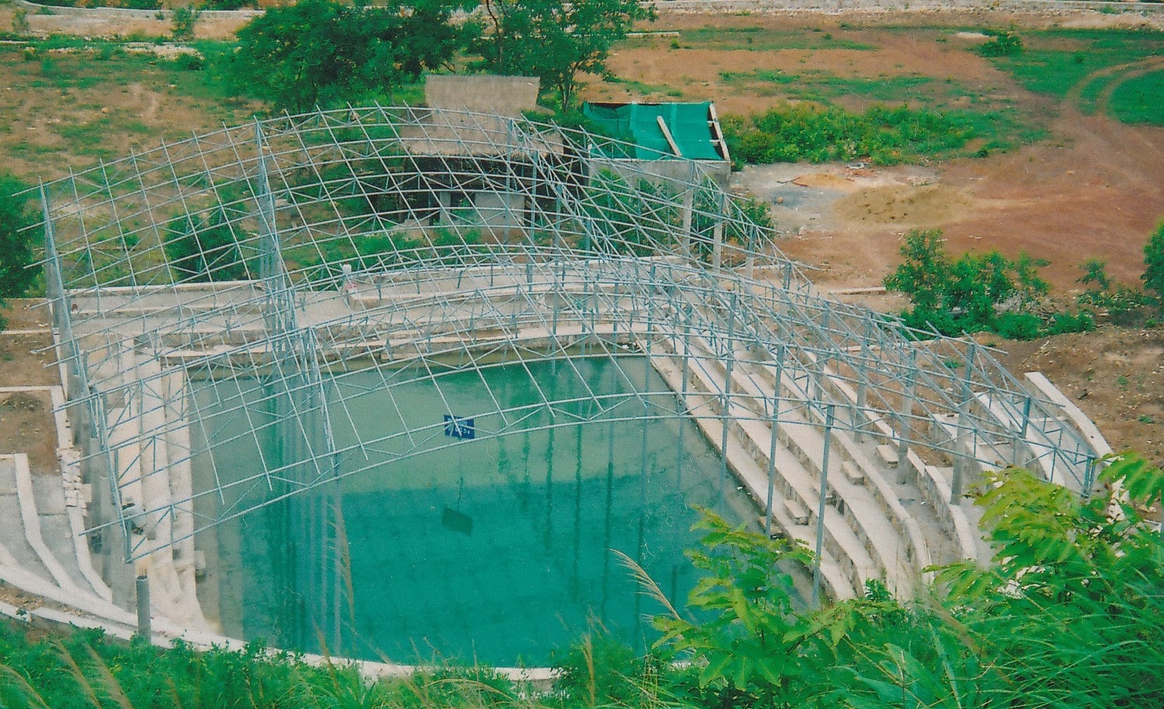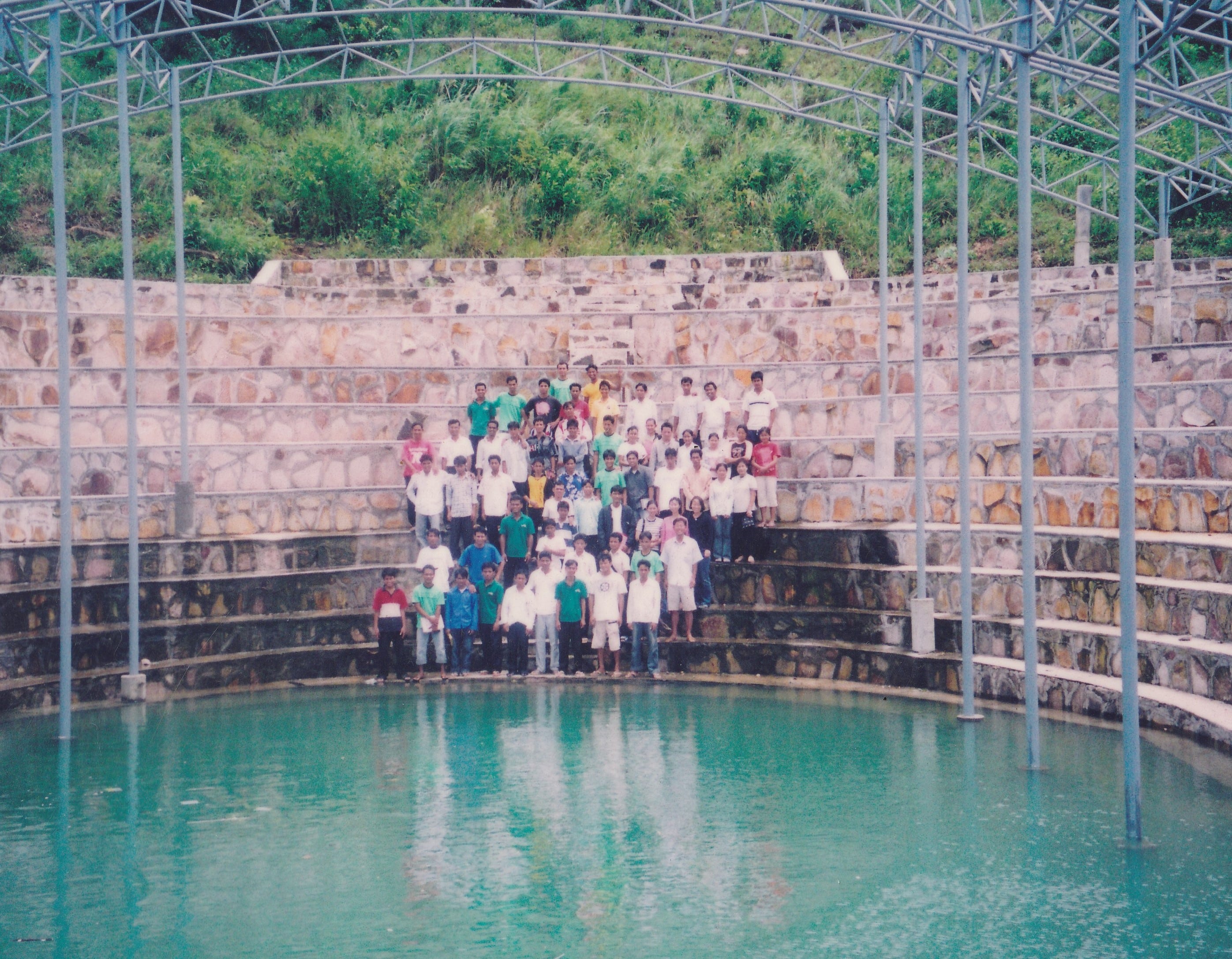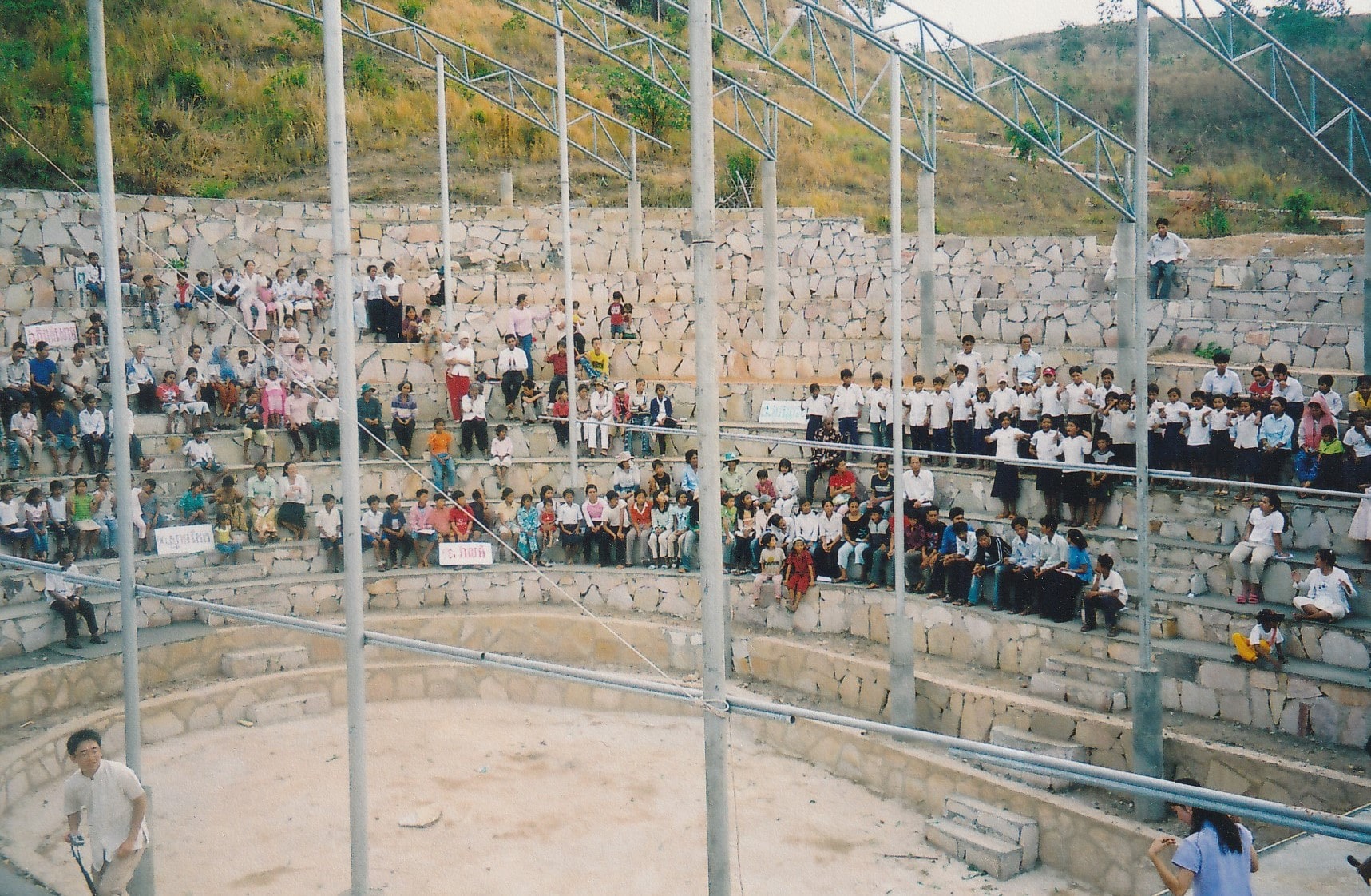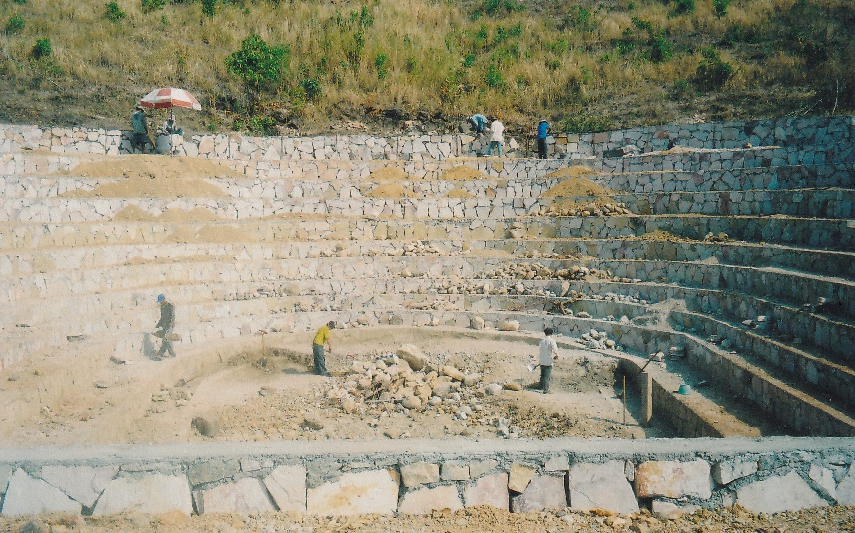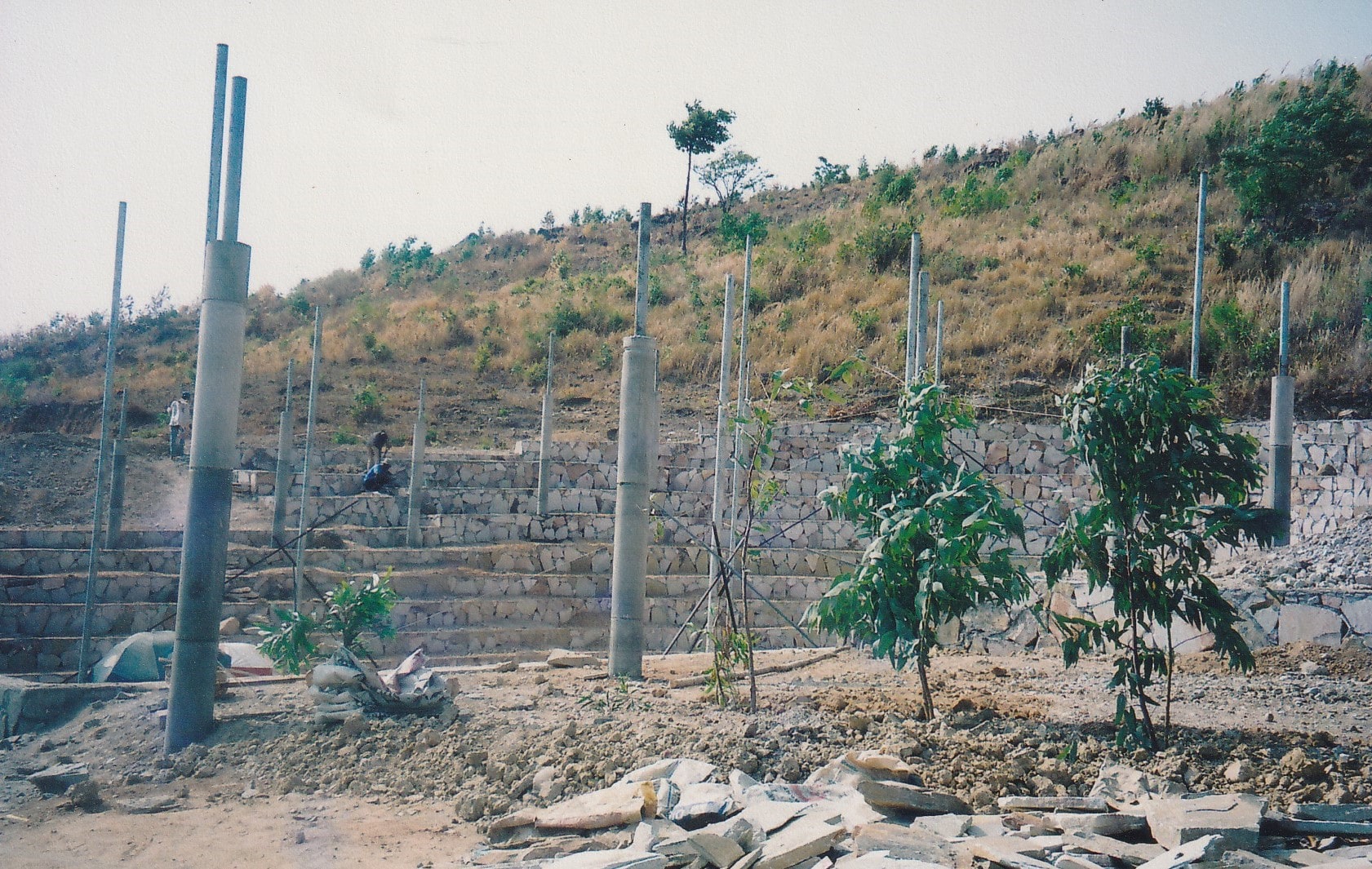 Because there was no city water to KBS, we had to solve it by ourselves. We dug several wells by hands, 5m to 12m deep. But they also dried up on dry season. So decided to make big reservoir at the valley by digging deeper and wider of the valley. It was full of water in rainy season but dried up quickly when dry season began. The water-keeping project failed. But it also was dangerous to keep in that way on rainy season because it was deep. So we changed the usage into Stadium. We raised stone walls from the bottom one by one. It became 12 steps of stone walls. After daily study of bible, students helped this project by carrying stones and digging ground. It tooks more than 3 years because it was done by only human power. Now it is used for gospel rally, Christmas service, revival gathering, worship, meditation, even as swimming pool in rainy season. It looks so nice. Even it was failure as reservoir, but it is a success for many usages. Our lives are also same with this Ark Stadium. Even failed before, we can find new successful lives if we repent and come to the Lord.