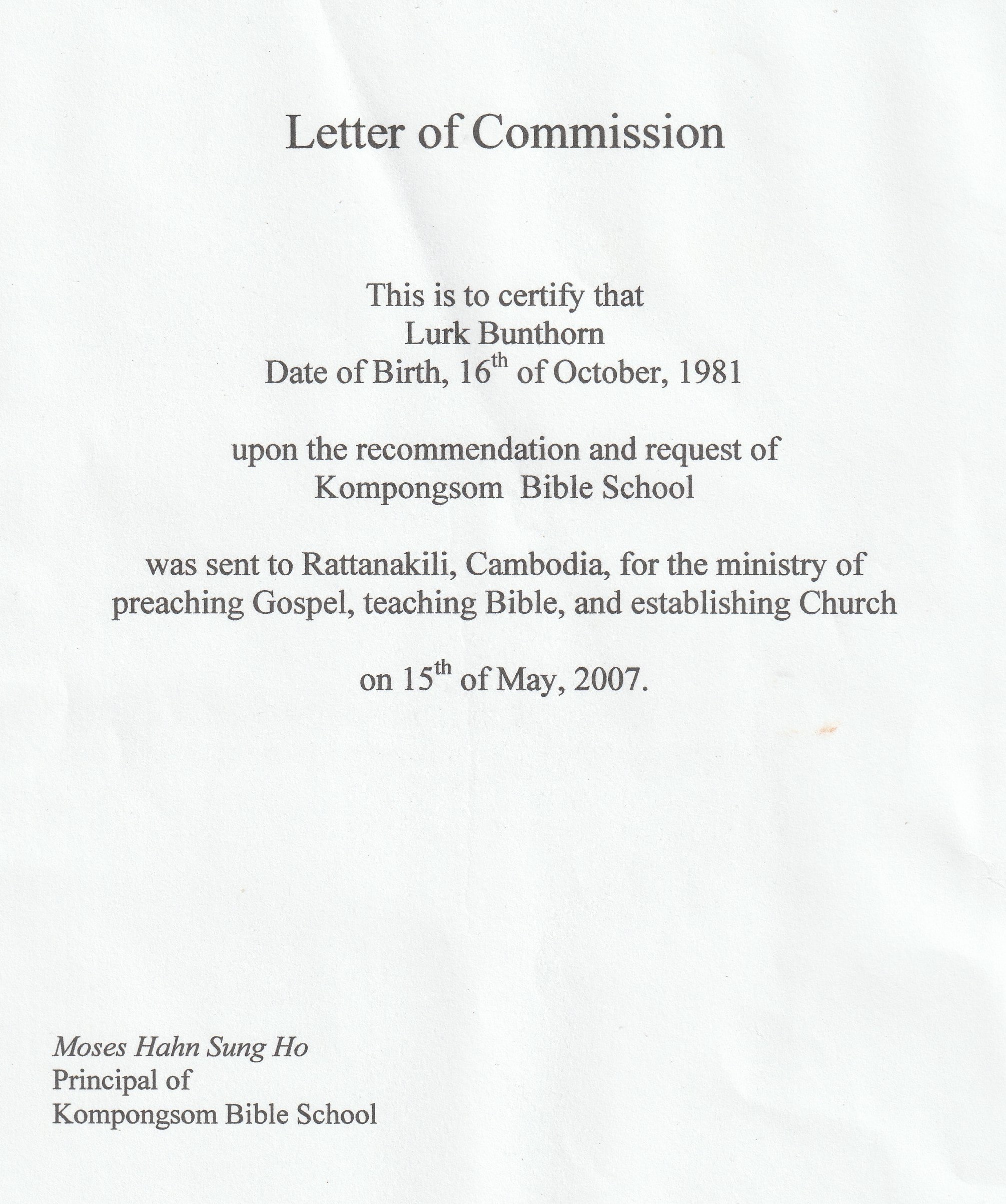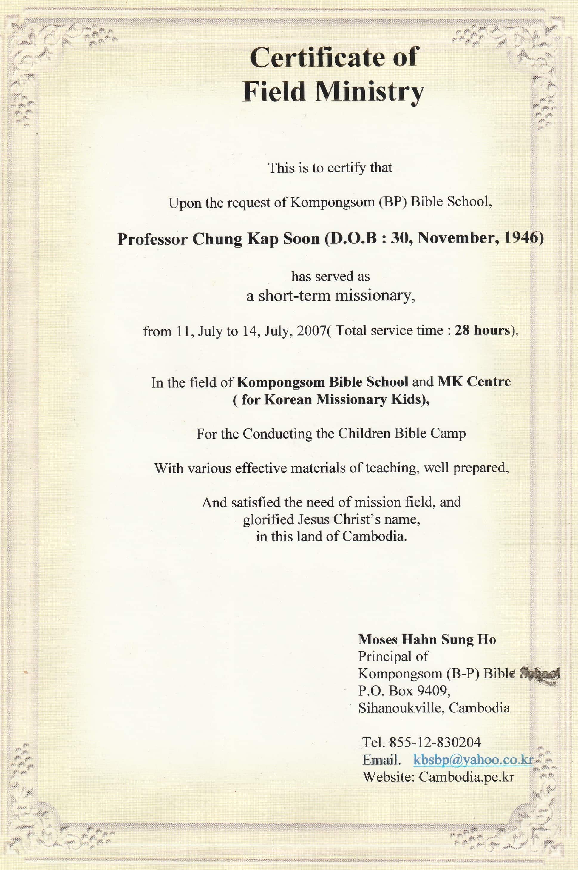앞으로 10년간은 복음전파의 자유가 제한되어 있는 나라의 복음 일꾼들을 캄보디아로 불러 필요한 훈련(신학, 영어, 선교 훈련)을 시킨후에 남아있는 추수밭으로 파송하는 일을 감당하고자 합니다. 그간 10년간 저 자신도 이러한 일을 위하여 훈련을 받았다고 생각합니다. 이제 더욱 더 동역과 간구와 성령안에서 이 큰일을 감량하기를 원합니다.